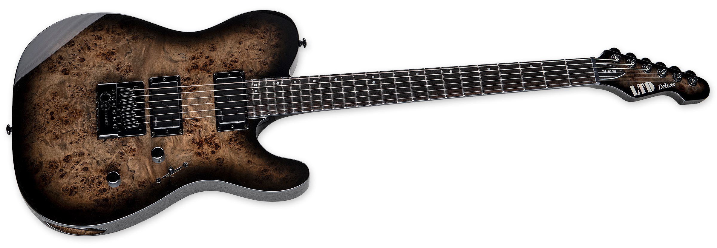 Elektrická gitara Elektrické gitary ESP LTD s označením TE-1000 patria do série LTD Deluxe. Ich tón, dizajn, spracovanie a herné vlastnosti plne zodpovedajú profesionálnym nástrojom. Predstavujú dobrú voľbu pre hráčov, ktorí hľadajú cenovo dostupnejšie gitary s plne profesionálnymi parametrami, ktoré ich budú dôstojne reprezentovať na koncertných pódiách a pri štúdiových nahrávkach. Mahagónové telo modelu TE-1000ET Charcoal Burst T zdobí topoľová vrchná doska a povrchová úprava Charcoal Burst. Na trojdielny