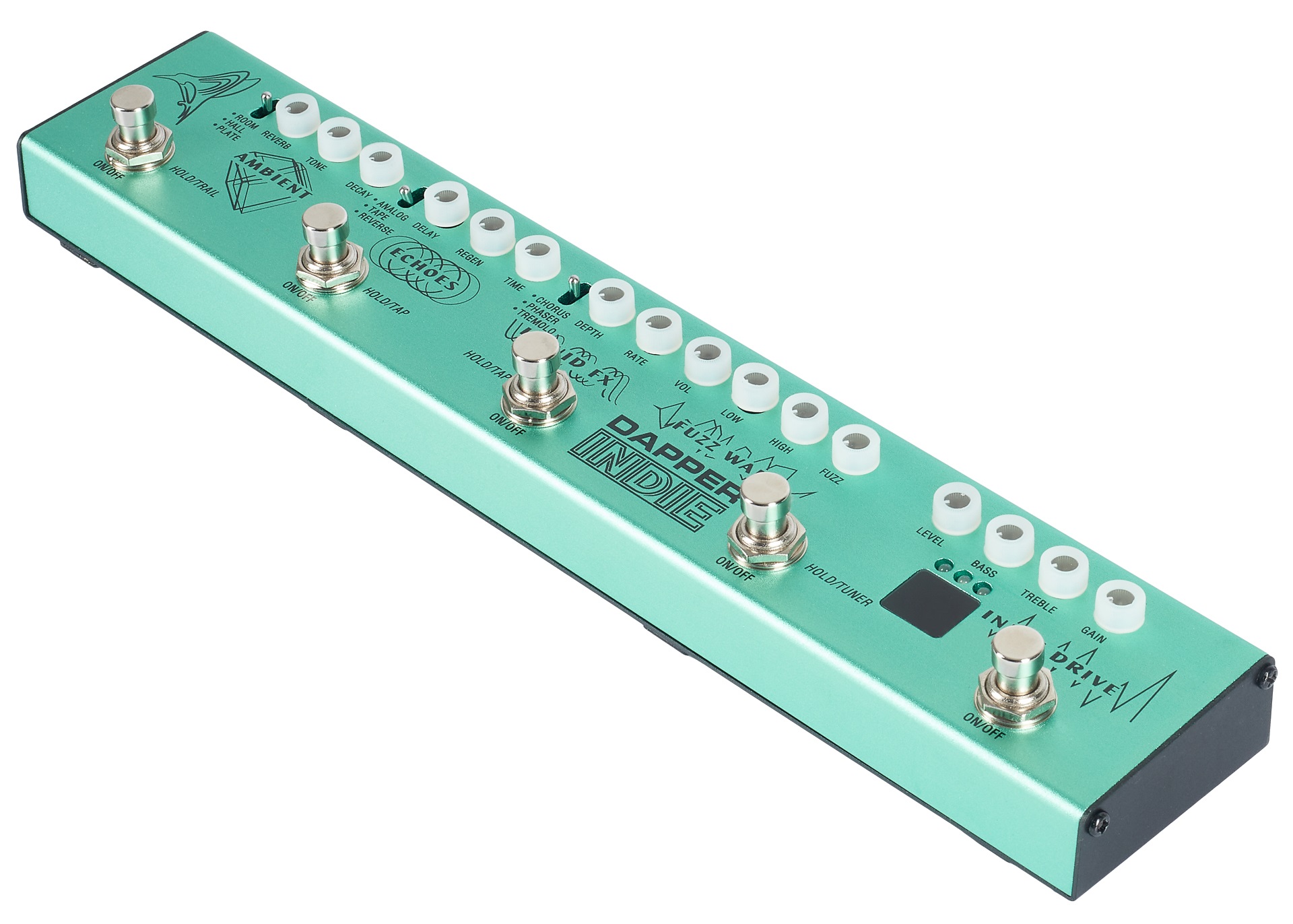 Gitarový multiefekt Dapper Indie je podlahový multi-efekt pre elektrickú gitaru s intuitívnym používateľským rozhraním, ktorý výrobca odporúča najmä pre ambientných/indie rockových gitaristov a všetkých zvukových búrlivákov. Čo teda Dapper Indie ponúka? Päť samostatných efektových sekcií otvára overdrive Indie Drive so zvukmi prispôsobenými nielen pre indie/alternatívny rock, ale aj pre klasickejšie alebo jeho dravejšie odnože a príbuzné hudobné štýly. Olej do ohňa prilieva Fuzz Wall s veľkým agresívnym zvu