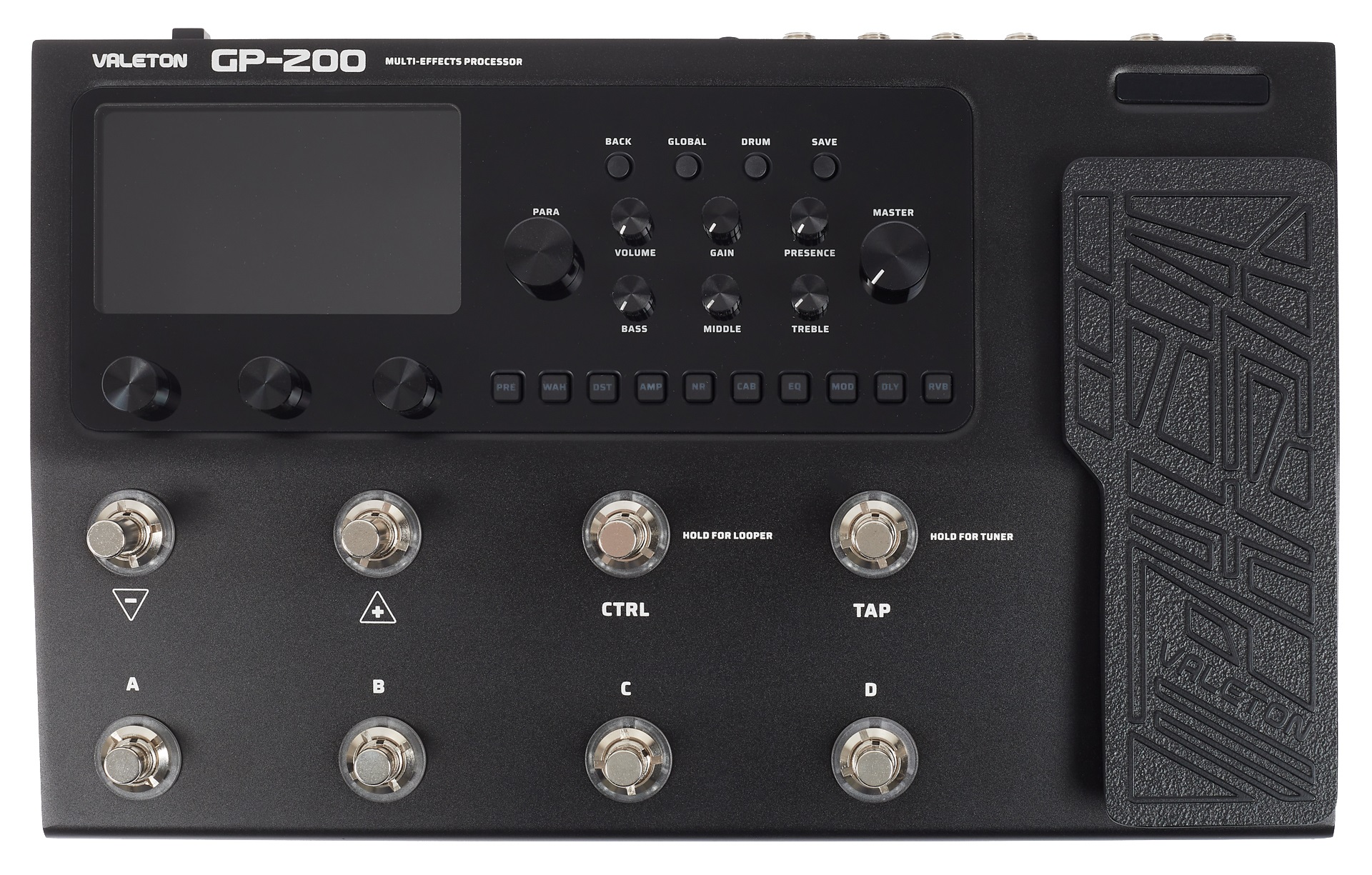 Gitarový multiefekt Valeton GP-200 je gitarový multiefekt s integrovaným expression pedálom vhodný pre hudobníkov všetkých úrovní. Vďaka pokročilým modelovacím technológiám (pracuje v 24-bitovej kvalite 44,1 kHz) sa môže pochváliť príjemným organickým zvukom, ktorý neurazí ani hráčov s vysokými nárokmi. Multi-efekt ponúka viac ako 240 efektov – viac ako 100 legendárnych dynamických/deformačných/frekvenčných/modulačných/delay/reverb efektových pedálov a 140 simulácií svetoznámych gitarových,