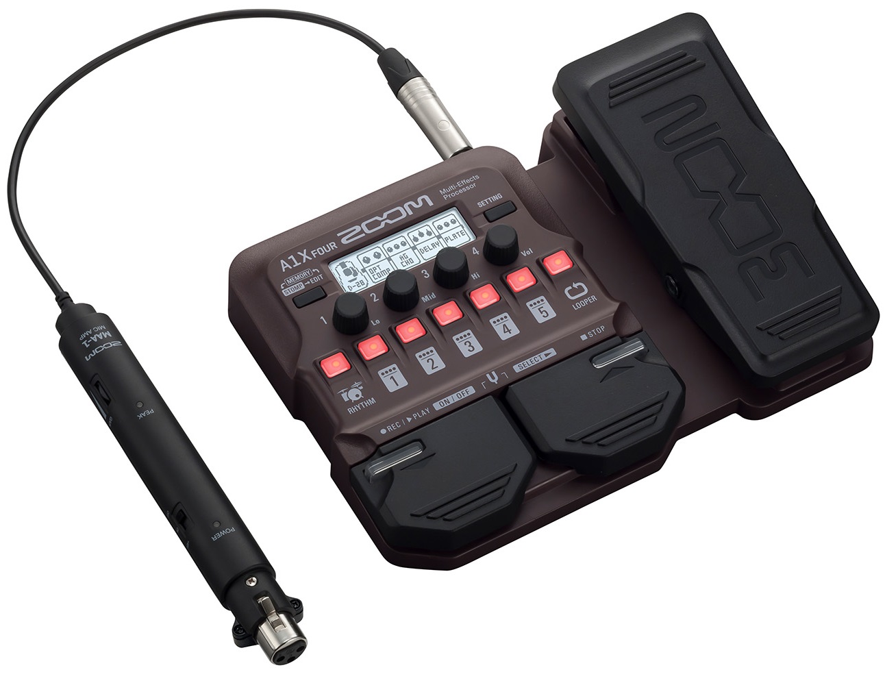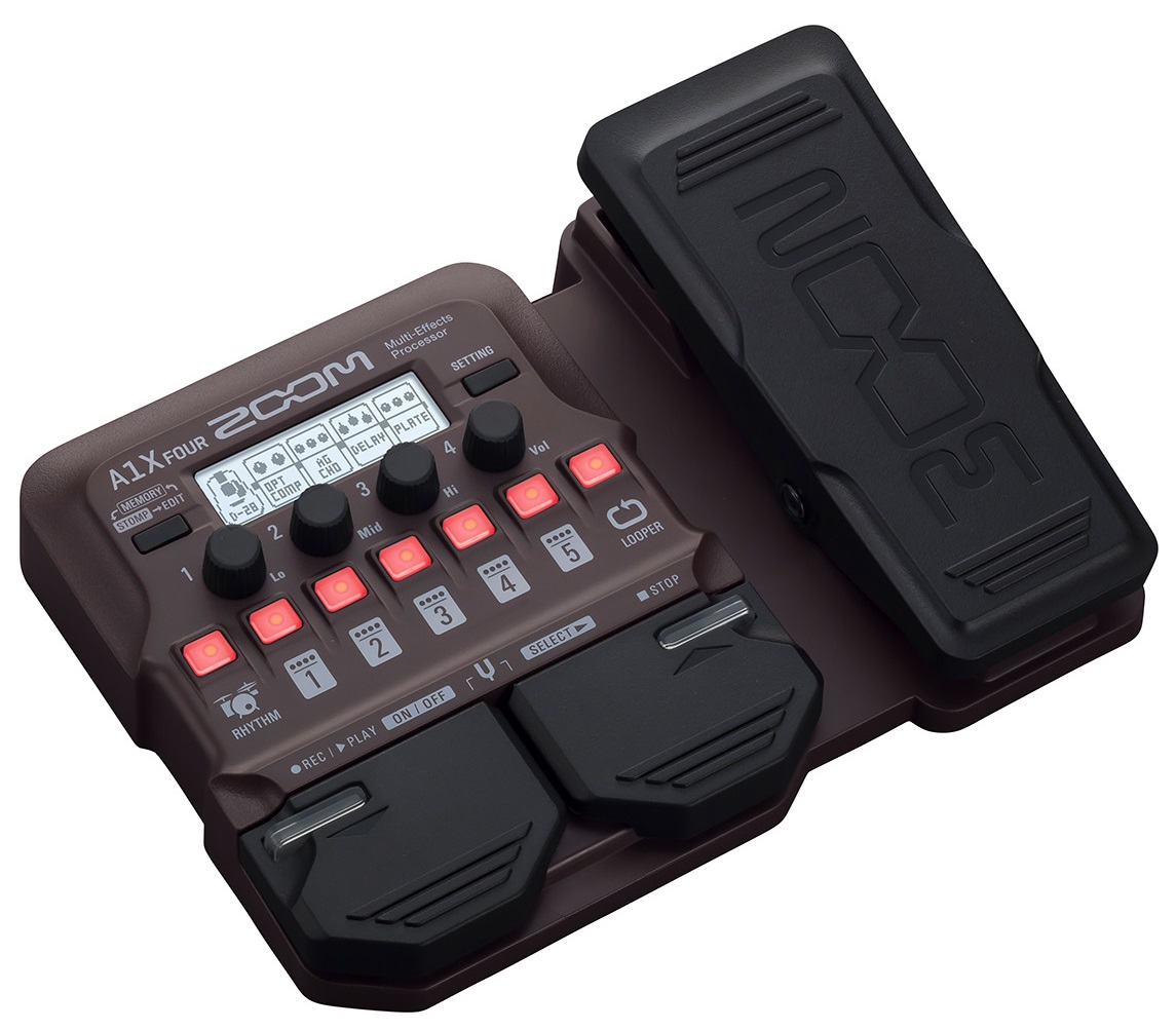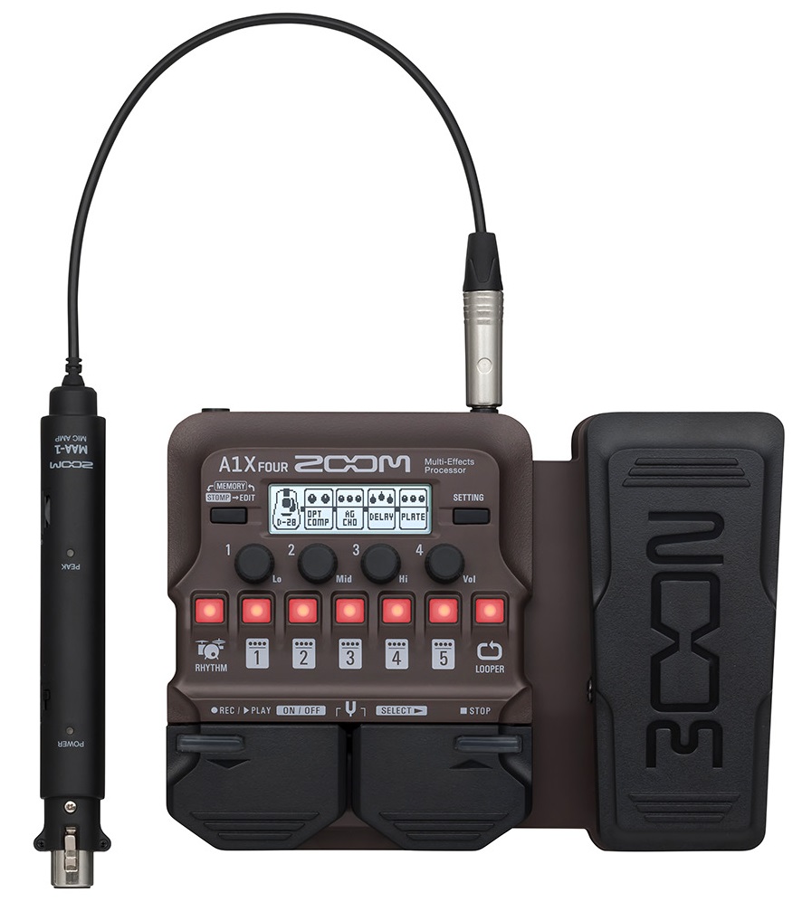 Gitarový multiefekt Zoom A1X Four rozširuje nie príliš širokú ponuku kompaktných multiefektov pre akustické nástroje, a to rozhodne. Pedál je určený najmä pre sláčikové, dychové a akustické strunové nástroje (saxofón, trúbka, ústna harmonika, husle, kontrabas, akustická gitara atď.) Multi-efekt ponúka 90 efektov (35 úplne nových vytvorených pre akustické nástroje a osem ovládaných expression pedálom), looper s 30 sekundami nahrávania, 68 skvelo znejúcich bicích sprievodných modelov, 40 firemných presetov, 5