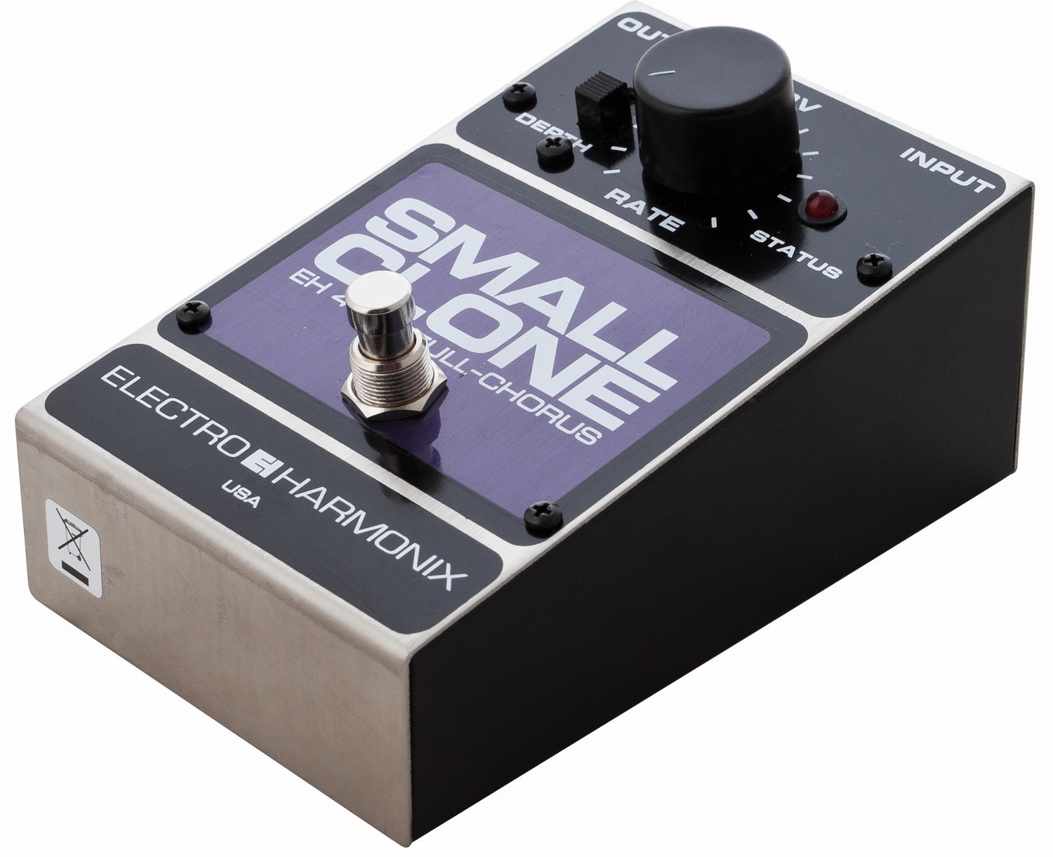 Gitarový efekt EHX Small Clone je klasický analógový chorus pedál, ktorý spopularizoval Curt Cobain a ďalší gitaristi. Je to typický chorus, ktorý "klonuje" gitarový signál, trochu mení frekvenciu týchto kópií a pridáva ich späť k pôvodnému signálu. Tým sa vytvára charakteristický priestorový efekt zdvojenia gitarových liniek. Nastavením hlavného ovládača Rate určíte, ako rýchlo bude chorus "oscilovať", a prepínačom Depth nastavíte intenzitu modulácie efektu. Z boxu ľahko vyčarujete klasické teplé zvuky cho