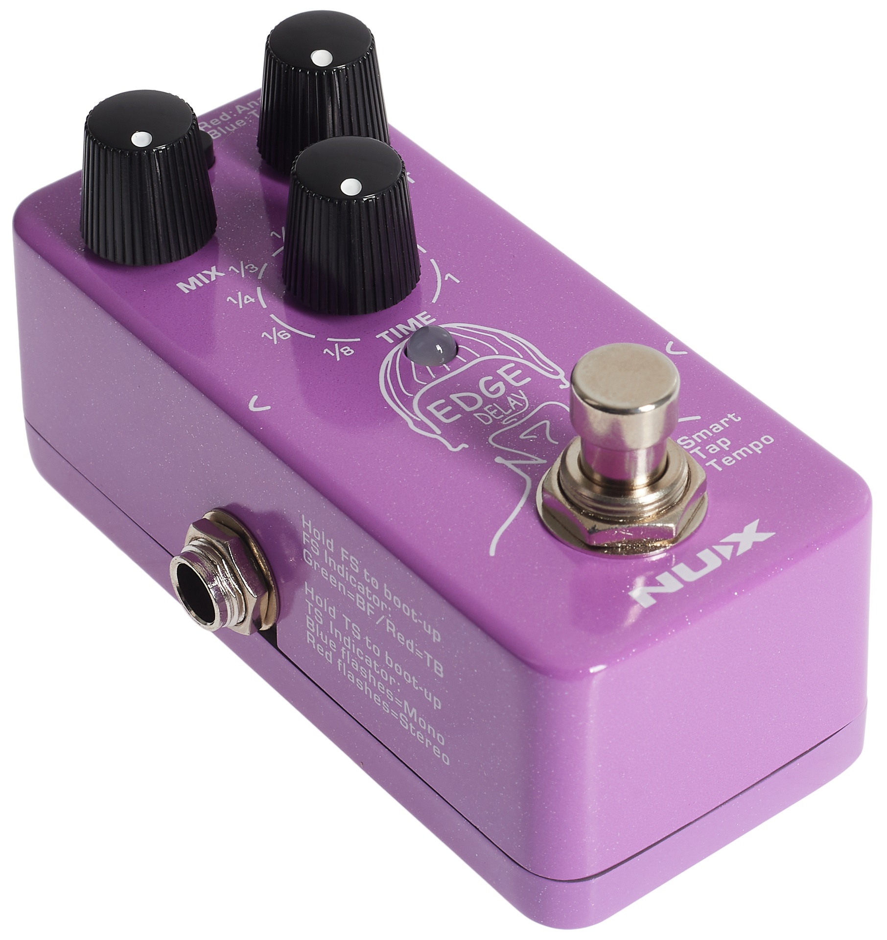 Gitarový efekt EDGE DELAY NDD-3 je kompaktný pedálový efekt zo série NUX Mini Core. Ponúka tri typy delay efektu – Phi Digital Delay, Analog Delay inšpirovaný klasickými BBD delay efektmi a digitálnu simuláciu Tape Echo. Ovládacie nastavenia určujú pomer suchého a mokrého signálu (Mix), počet opakovaní delay efektu (Repeat) a čas oneskorenia (Time). Prepínače Tap možno použiť na výber medzi typmi efektov, ako aj na stereo a mono zapojenie (stereo s konektormi TRS jack). K dispozícii je aj funkcia tap tempo
