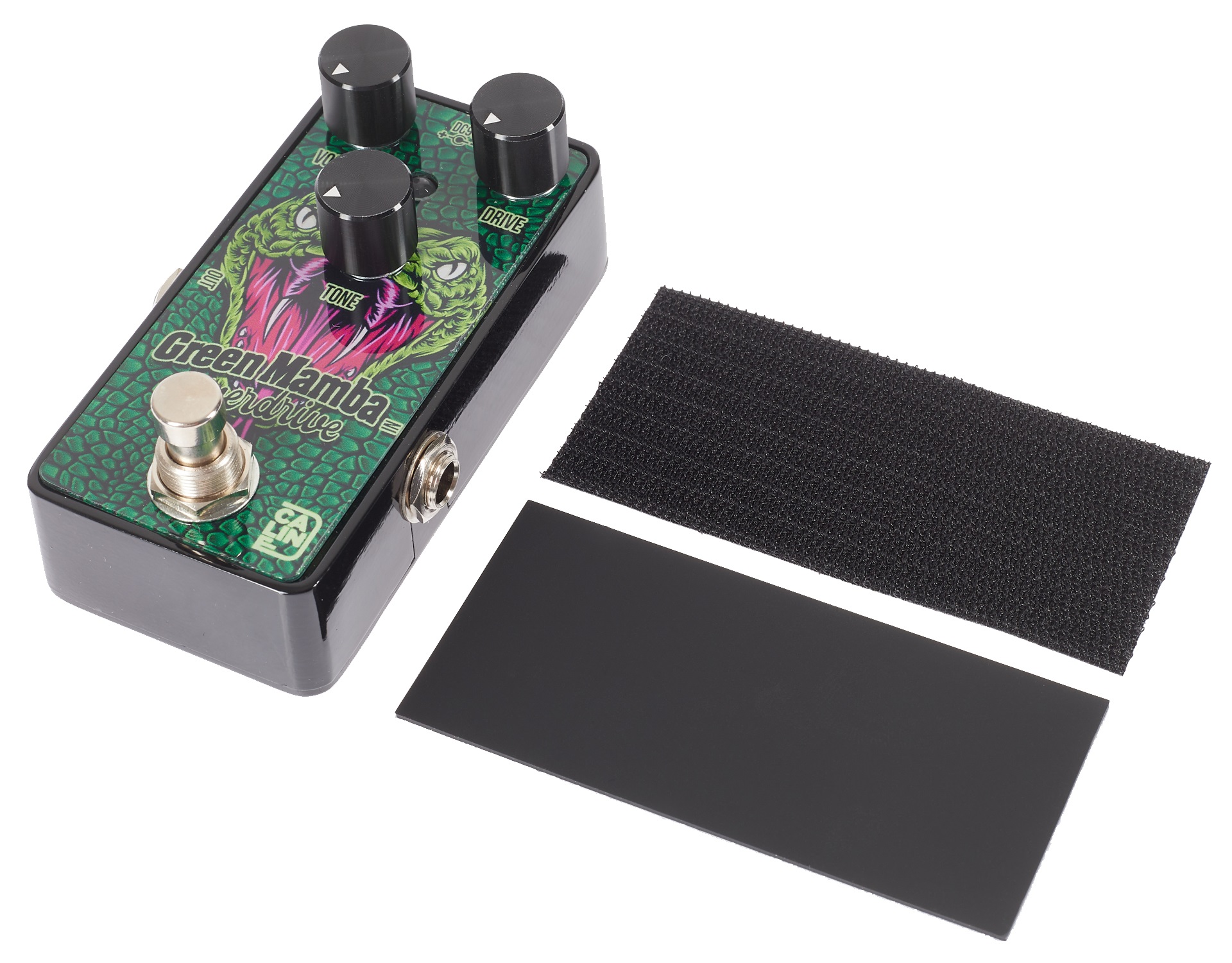 Gitarový efekt Green Mamba Drive je kompaktný overdrive pedálový efekt zo série G od Caline. Podobne ako známe TS pedále ponúka dostatočné množstvo gainu pre krásne šťavnaté gitarové sóla a rockové riffy a údernosť v strednom pásme, takže sa ľahko dostane do kapelového mixu. Jednotlivé nastavenia gombíkov určujú výstupnú hlasitosť, množstvo gainu/skreslenia a charakter tónu/EQ. Pedálový efekt je zapojený ako true-bypass, takže vo vypnutom stave neovplyvňuje priepustný signál. Na napájanie sa používa 9V adap