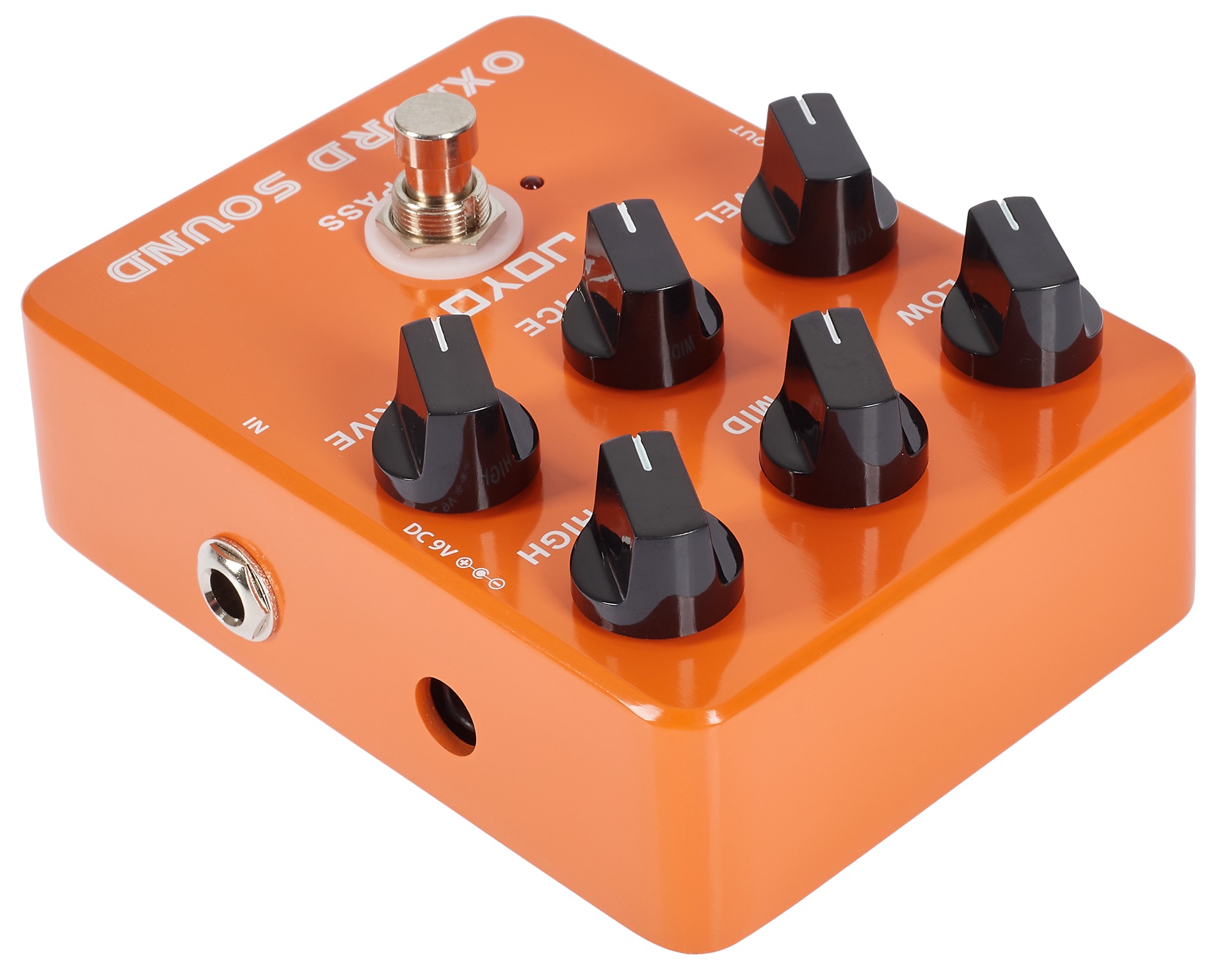 Gitarový efekt Značka Joyo je známa svojimi cenami ústretovými k zákazníkom a nie je tomu inak ani v prípade tohto kompaktného gitarového pedálu. JF-22 Oxford Sound je ďalším zo série krabičiek "Amp in a Box", tentoraz inšpirovaných rockovým zvukom strojov Orange zo 70. rokov. Šesť gombíkov simuluje ovládacie prvky skutočného predzosilňovača, takže nebudete mať problém nastaviť požadovaný zvuk – či už čistý alebo rockový. Všetka elektronika efektu je umiestnená v odolnom kovovom šasi. Krabička pracuje v rež
