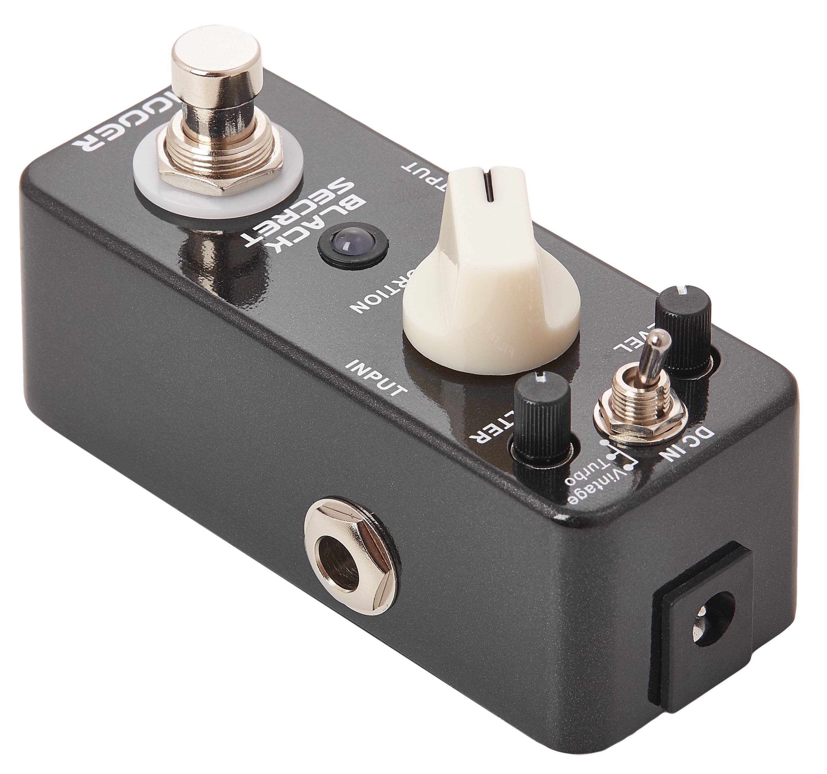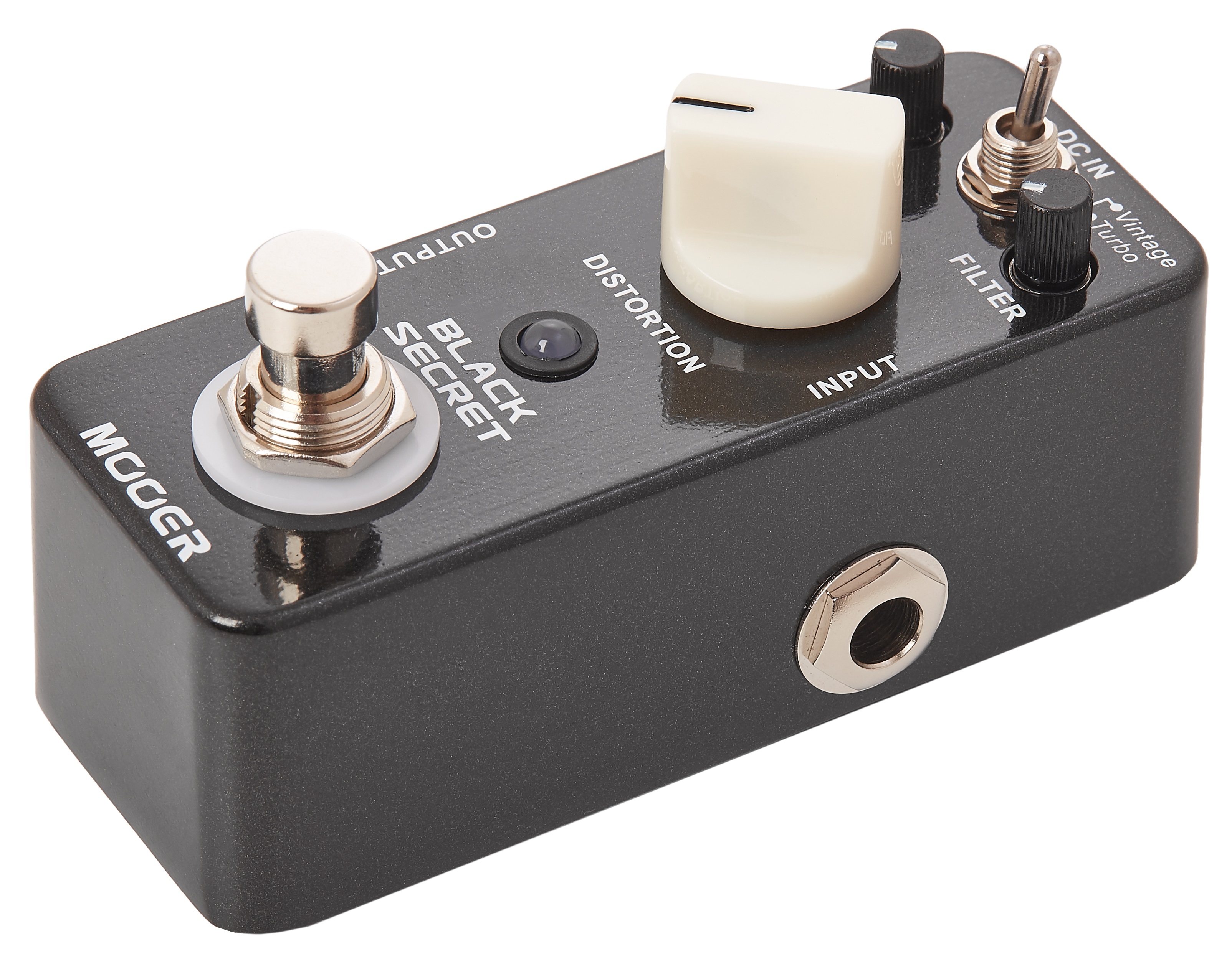 Gitarový efekt Black Secret je kompaktný gitarový distortion pedál zo série Micro čínskej značky Mooer. Ide o tradičný skresľovací pedál s jednoduchým ovládaním a dvoma voliteľnými režimami – Vintage pre hráčov, ktorí majú radi rockovejší zvuk gitary, a Turbo pre fanúšikov agresívnejšieho metalového zvuku. Jednoznačným plusom pedálu je pomer ceny a výkonu, kedy si jeho kúpu môže bez preháňania dovoliť každý. Všetka elektronika je uložená v odolnom kovovom šasi. Krabička pracuje v režime true bypass, takže v