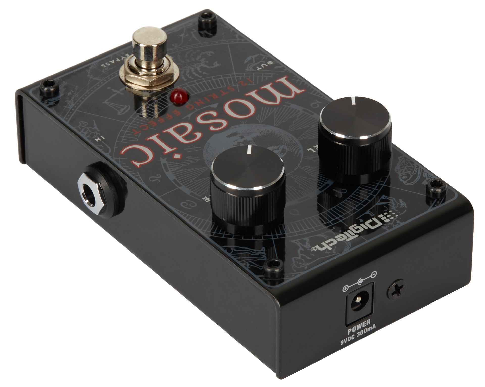 Gitarový efekt Digitech Mosaic je polyfonický modulačný efekt, ktorý verne simuluje bohatý zvuk dvanásťstrunových gitár, t. j. oktávový rozdiel v basových strunách a zdvojenie vo výškových strunách. Jednotlivé tóny a akordy získajú úplne nový lesk. Efekt je vhodný na použitie s elektrickými aj elektroakustickými gitarami. Dva krabicové ovládače určujú intenzitu efektu (Level) a stupeň čistoty zvuku (Tone). Krabička je zapojená ako true bypass. Napájanie zabezpečuje priložený adaptér.
