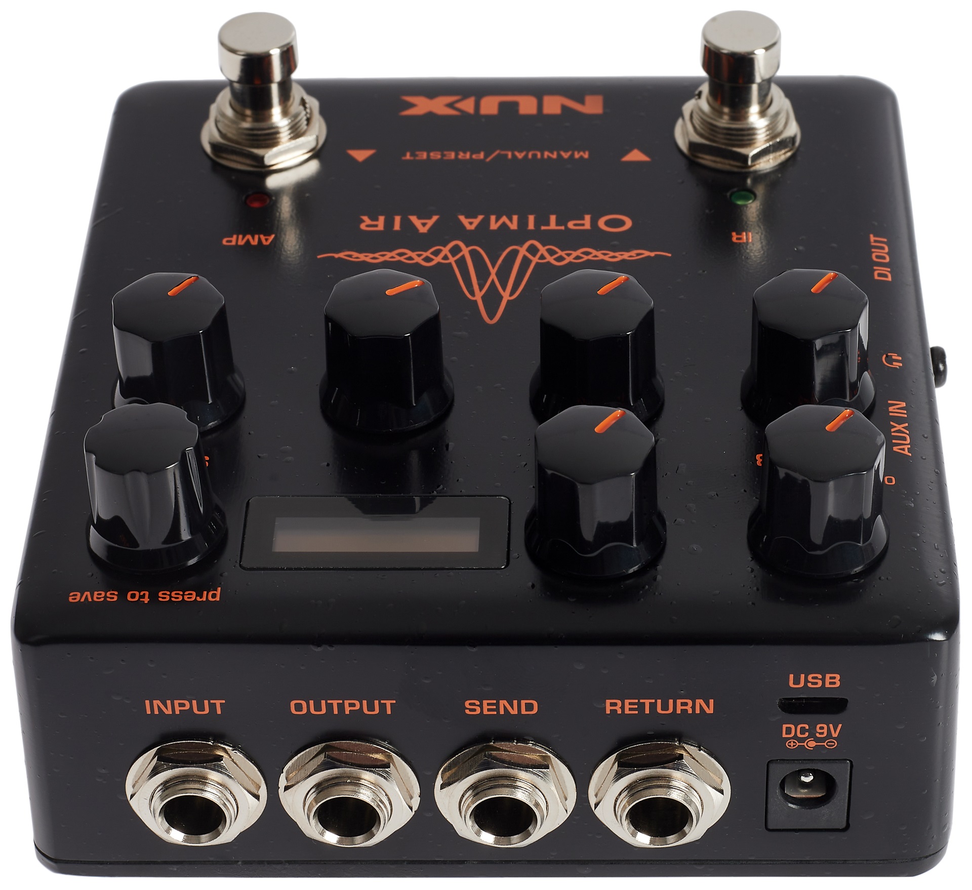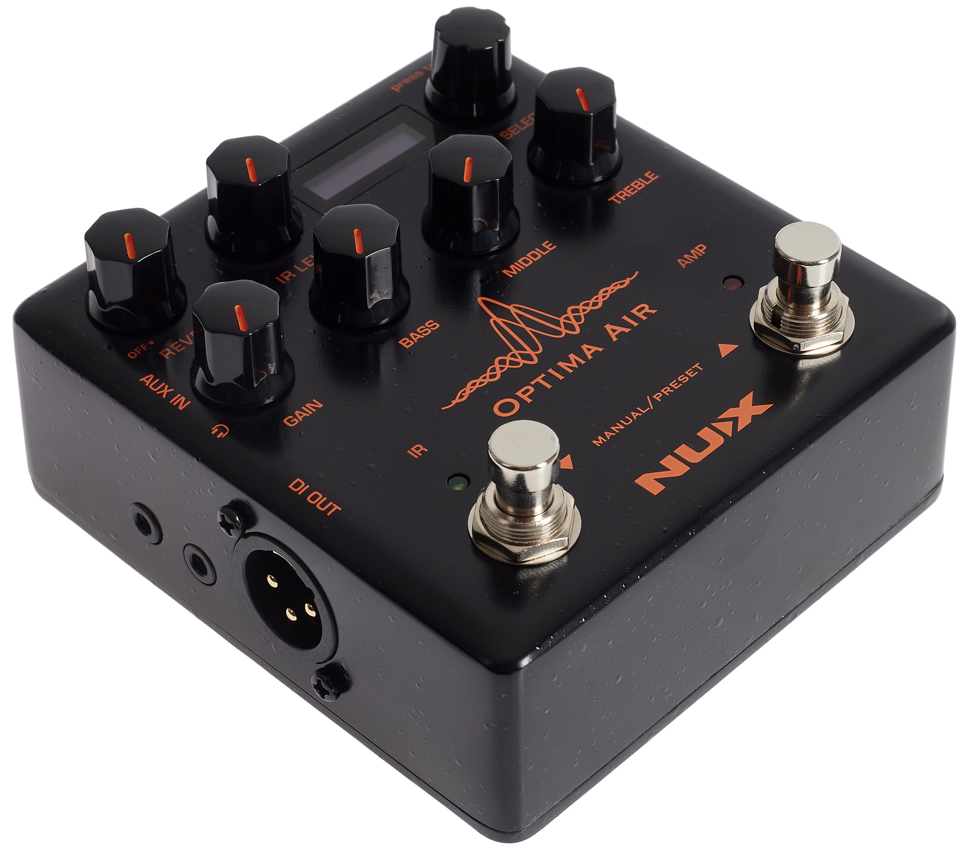 Gitarový efekt NUX Optima Air je akustický simulátor, predzosilňovač a IR Loader s trojpásmovým ekvalizérom, ovládaním Gain, vstavaným reverbom a efektovou slučkou na jednoduchú integráciu vašich obľúbených gitarových efektov. Box pracuje v dvoch režimoch (Manual a Preset) a ponúka 15 impulzných odoziev (IR) známych značiek optimalizovaných pre konkrétne typy gitár (akustické, elektrické) a snímačov a možnosť nahrávania vlastných profilov/IR, deväť slotov pre užívateľské presety, XLR DI výstup pre pripojeni
