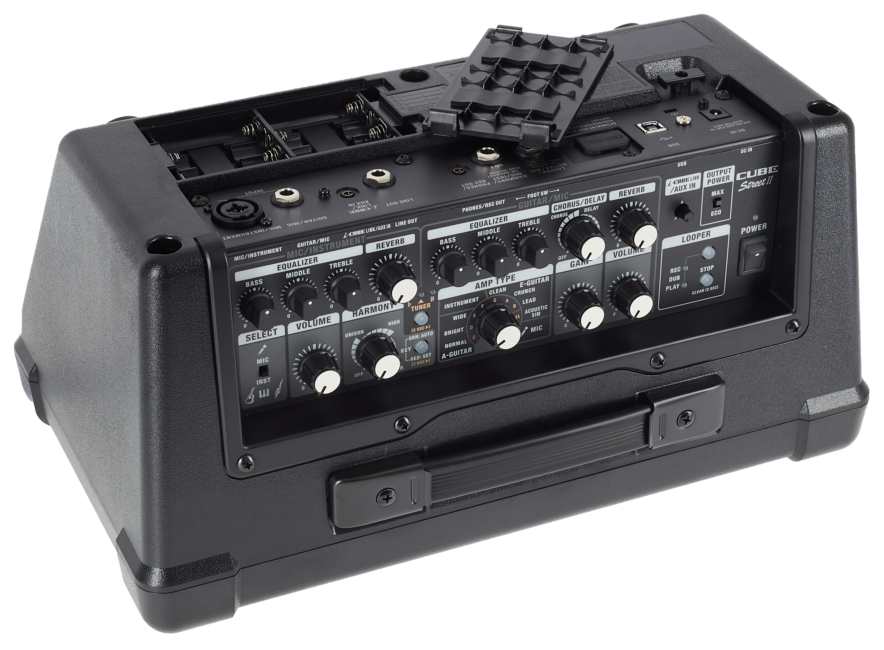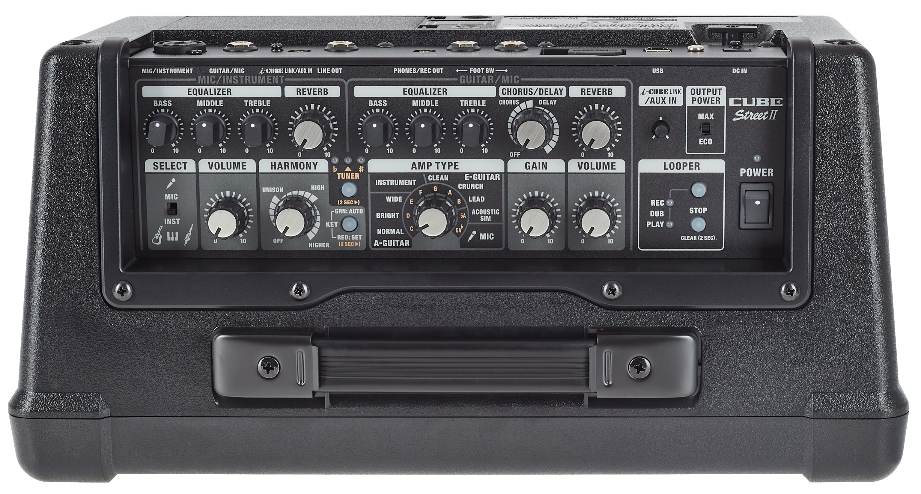Gitarové modelingové kombo Boss Cube Street II je gitarové modelingové kombo určené pre pouličných umelcov/buskárov, skladateľov a všetkých hudobníkov, ktorí využijú ľahké prenosné kombo s batériovým napájaním (8x AA) a množstvom praktických funkcií vrátane kompatibility s Bluetooth na jednoduché ovládanie Cube Street II z telefónu. Toto dvojkanálové kombo vychádza z obľúbeného modelu Roland Cube Street a ponúka výkon 10 W a bohatý stereo zvuk z dvoch 6,5-palcových reproduktorov, pódiový sklon reproduktorov