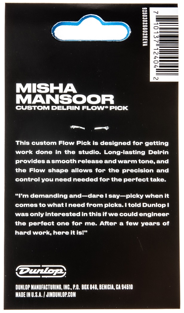 Brnkadlá Signature Tieto signované trsátka Misha Mansoor vychádzajú z modelu Tortex Flow, ale sú vyrobené z ešte tvrdšieho a odolnejšieho delrínu pre maximálnu životnosť. Ide o tenké, ale odolné trsátka, ktoré vám ponúknu úderný atak a čistý zvuk. Vďaka ostrému hrotu poskytujú maximálnu presnosť úderov, zatiaľ čo skosené hrany vám pomôžu zlepšiť plynulosť vašej hry. Ich povrch je zdrsnený, takže vám poskytnú aj pevný, protišmykový úchop. Značku Dunlop snáď