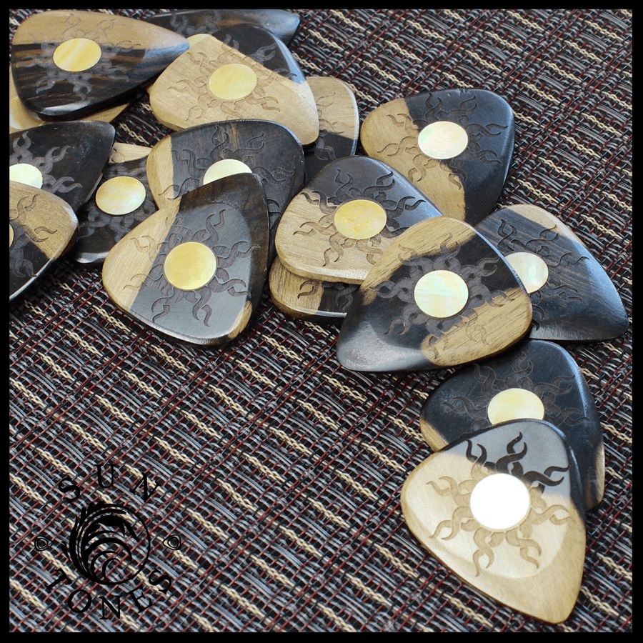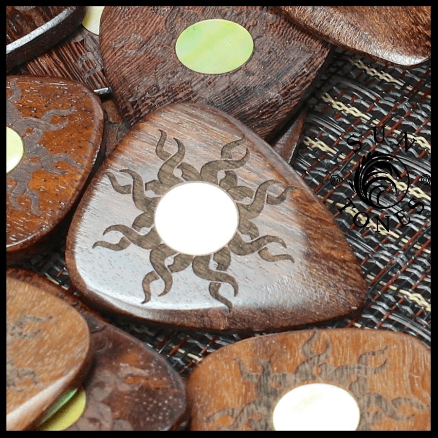 Brnkátka Sada štyroch drevených trsátok s motívom slnka z exotických tvrdých drevín je vhodná najmä pre elektrickú alebo dubovú gitaru. Súčasťou balenia je praktická plechová krabička. Či už hľadáte darček pre hudobného nadšenca, alebo len hľadáte dokonalý zvuk a chcete vyskúšať trsátka z netradičných materiálov, v Timber Tones určite nájdete to, čo potrebujete. Trsátka Timber zo série Sun Tones sú vyrobené z tvrdých drevín, ktoré z vašej gitary vytiahnu jasné a čisté výšky