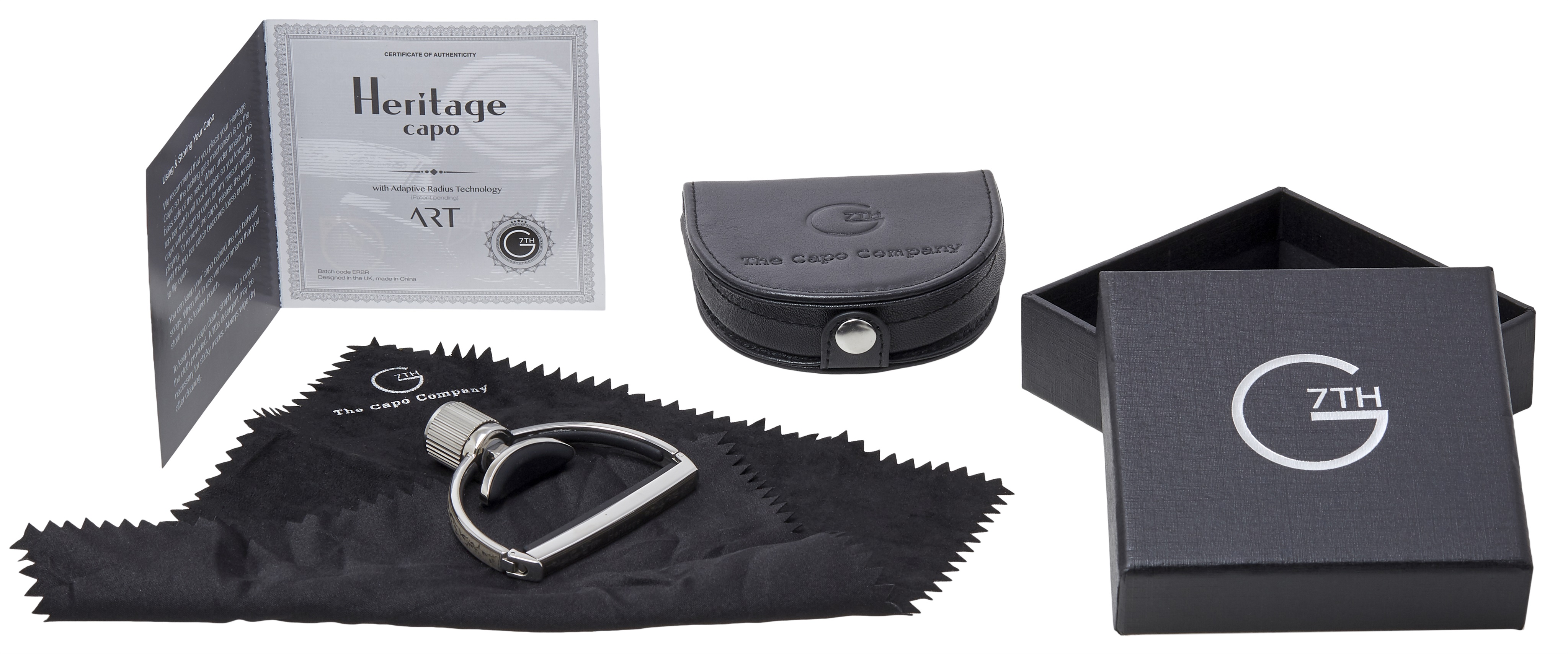 Kapodaster Anglická spoločnosť G7th ponúka kapodastre, ktoré nielen skvele vyzerajú, ale predovšetkým majú praktické ovládanie, kvalitné komponenty a precízne spracovanie. Výsledkom sú výrobky, ktoré oslnia dizajnom aj funkčnými vlastnosťami. Tento luxusný model z limitovanej edície predstavuje absolútny vrchol radu Heritage. Ručne leštená konštrukcia z nehrdzavejúcej ocele je zdobená rytinami akantových motívov. Kapodastr samozrejme ponúka všetky štandardné funkcie série Heritage, vďaka technológii A.R.T.