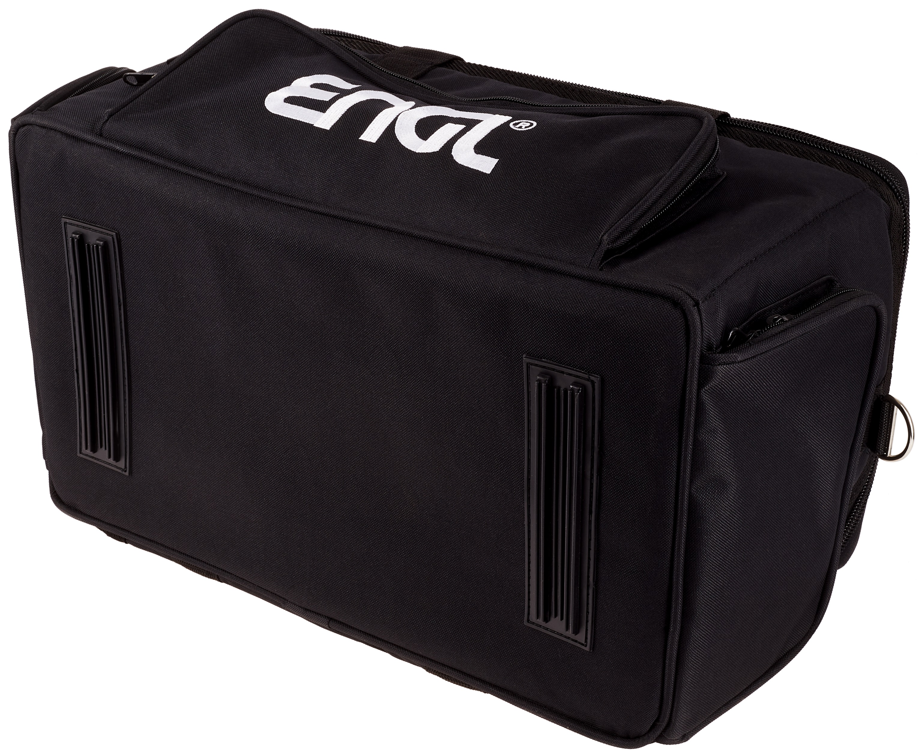 Prepravný obal Vysokokvalitné prepravné puzdro pre gitarové zosilňovače Engl Rockmaster E307, Metalmaster E309, Fireball E633 a Gigmaster E315 s niekoľkými vonkajšími vreckami na drobné príslušenstvo a vystuženou rukoväťou.