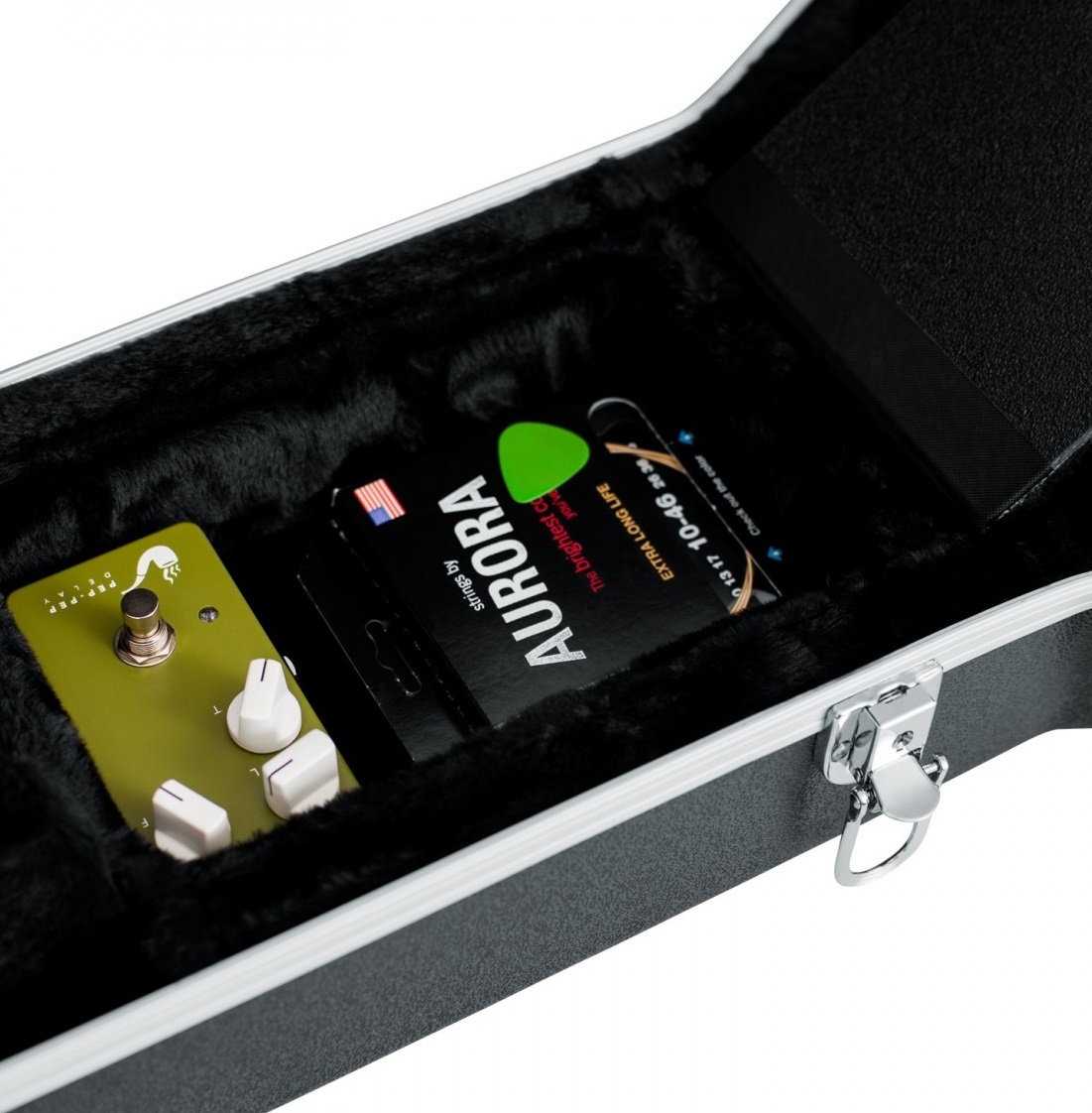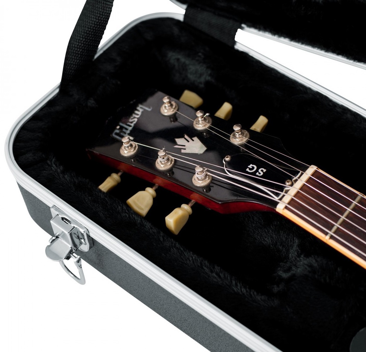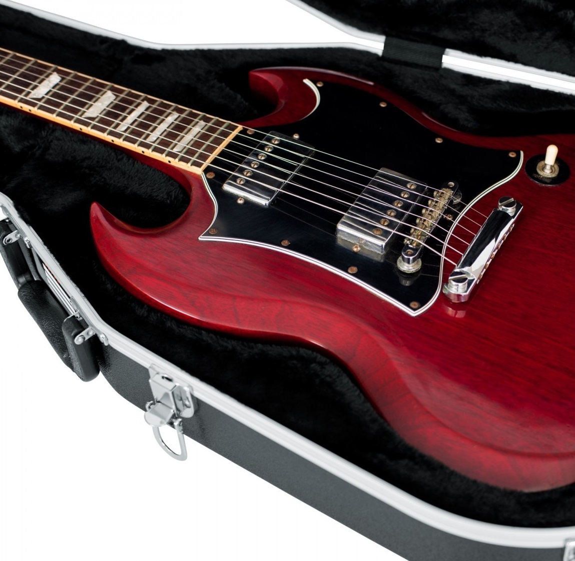 Kufor na elektrickú gitaru Puzdro Gator GC-SG, vhodné pre elektrické gitary typu SG, je navrhnuté na maximálnu ochranu vášho nástroja. Má tvrdý vonkajší plášť z odolného ABS plastu, ktorý poskytuje vysokú odolnosť voči nárazom. Vo vnútri je vybavený penovým polstrovaním a plyšovým poťahom, ktorý chráni váš nástroj pred poškriabaním. Okrem toho ponúka priestranný úložný priestor na príslušenstvo. Puzdro je vybavené pohodlnými rukoväťami na jednoduchú prepravu a bezpečnostnými západkami, ktoré zabraňujú náhod