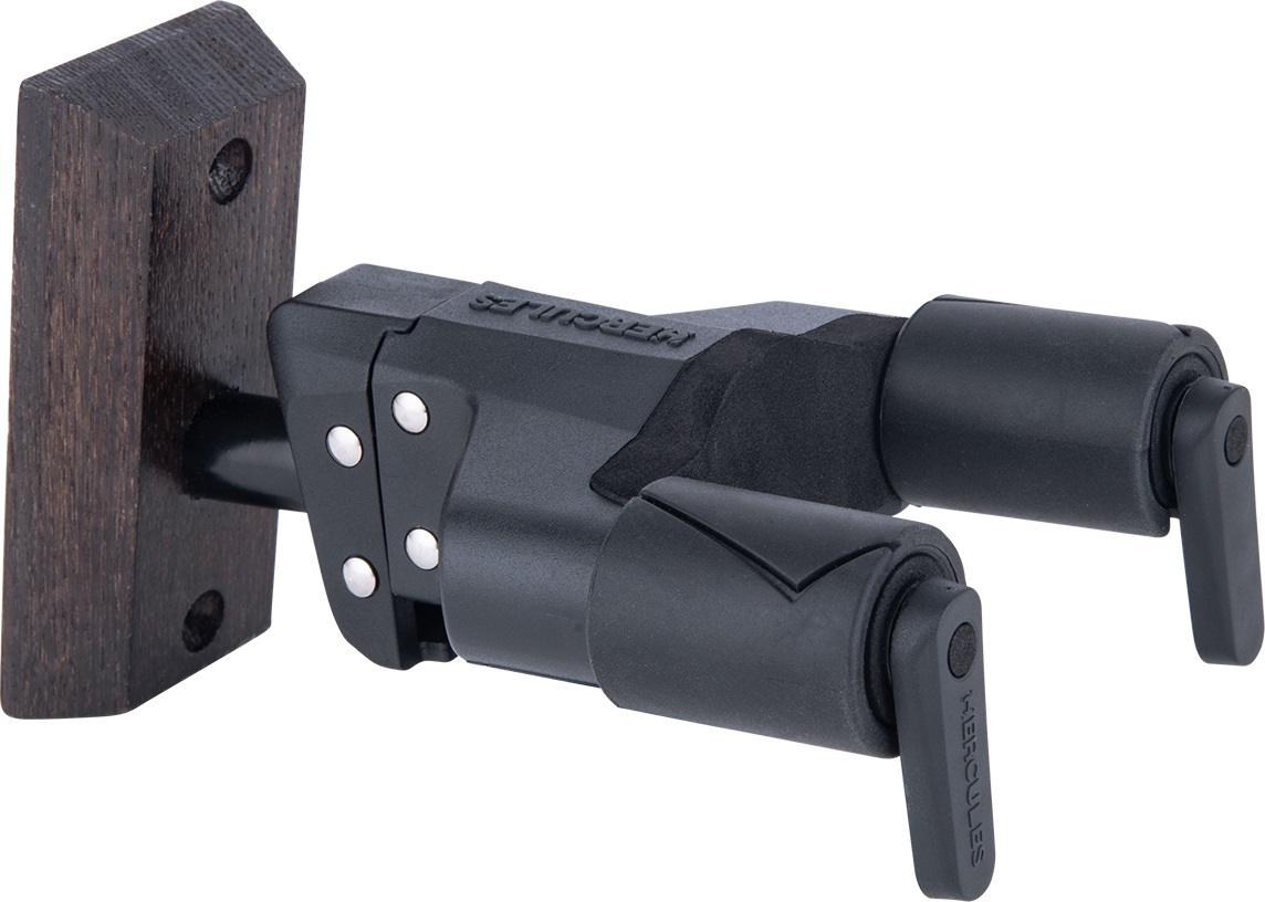 Gitarový vešiak HERCULES GSP38 PLUS je univerzálny držiak pre strunové nástroje, ako sú gitary, basgitary, mandolíny a ukulele. Podstavec je vyrobený z dreva a na stenu sa pripevňuje dvoma skrutkami. Samotný držiak je otočný, aby si poradil aj s tými najnepohodlnejšími tvarmi hlavy, a je vybavený aj automatickým zámkom, ktorý sa uzamkne hmotnosťou samotného nástroja, takže nástroj nemôže vypadnúť. Zvládne nástroje s priemerom krku od 40 do 52 mm. Súčasťou balenia sú skrutky a hmoždinky.