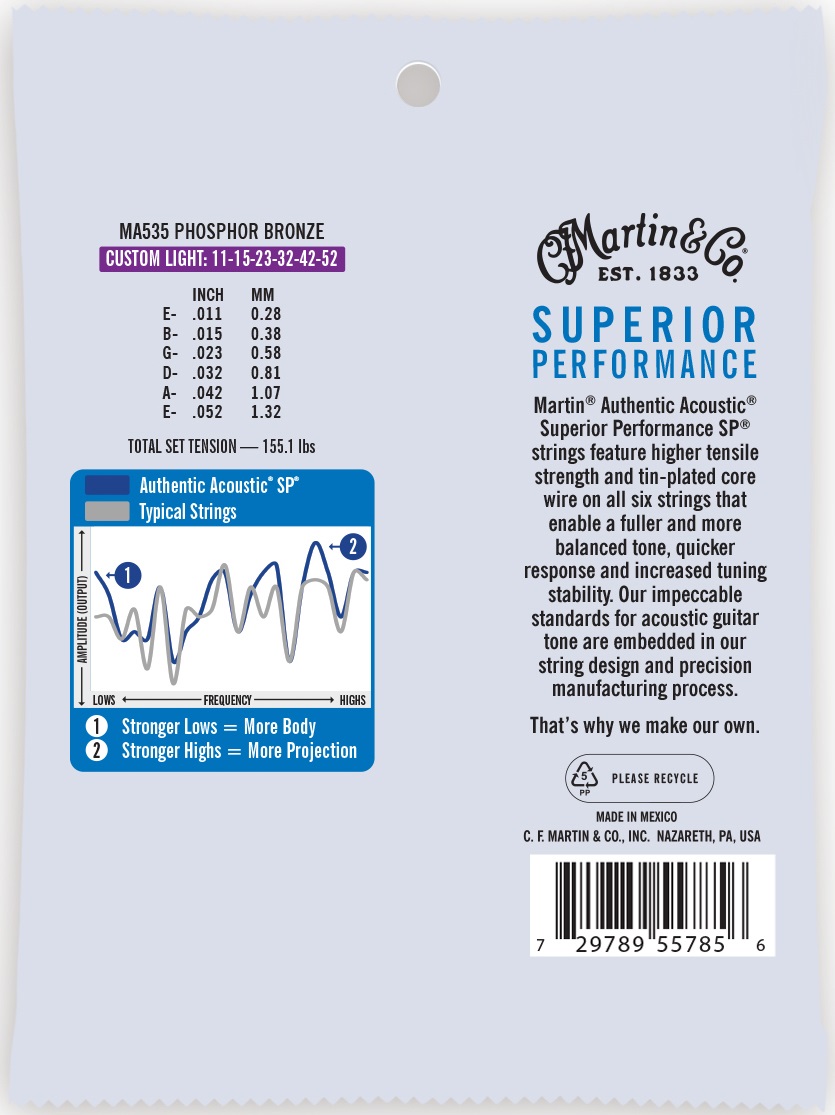 Kovové struny na akustickú gitaru Struny Martin Authentic SP sú navrhnuté s ohľadom na potreby aktívnych hudobníkov, takže musia vydržať náročné podmienky neustáleho koncertovania a skúšania. Ich základom je oceľové jadro s pocínovanou vrstvou pre zvýšenú odolnosť voči korózii, zatiaľ čo dokonalé zvukové vlastnosti zaručuje obal zo zliatiny fosforbronzu. Výsledkom je teplý, zaoblený zvuk, ktorý zaručene pohladí vašu dušu a dodá vašej hre teplejší charakter. Okrem vysokej odolnosti a skveléh