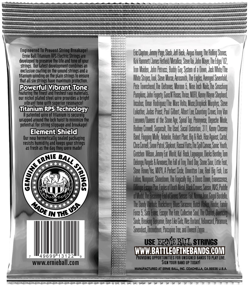 Struny na elektrickú gitaru Struny Ernie Ball Coated Titanium RPS na elektrickú gitaru sú ideálnou voľbou pre hudobníkov, ktorí hľadajú struny s extrémnou odolnosťou a vysokou stabilitou ladenia. Ich tajomstvom je použitie najnovších technológií, aby struny vydržali čo najdlhšie a odolali aj tomu najagresívnejšiemu hraniu. V prvom rade sú potiahnuté špeciálnou nanotechnológiou, ktorá zabezpečuje ich odolnosť voči nečistotám a korózii. Rozvinuté struny sú navyše na guľôčke o