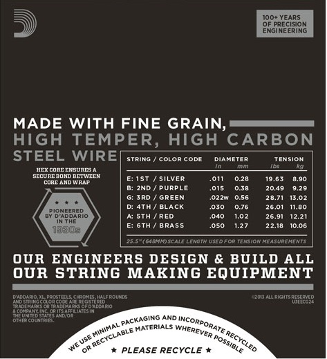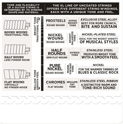 Struny na elektrickú gitaru Struny pre elektrickú gitaru D'addario XL Chromes ponúkajú teplý, zaoblený tón, ktorý si obľúbili najmä jazzoví gitaristi alebo bluesmani (okrem iných ich používa americký bluesový gitarista Gary Clark Jr.). Ide o vyhladené struny, ktoré pri hraní nevydávajú takmer žiadny hluk a poskytujú hladký pocit z hry. Ich základom je šesťhranné oceľové jadro, ktoré zaručuje dokonalú intonáciu, dlhú životnosť a konzistentný pocit pri hre. Navinuté struny sú