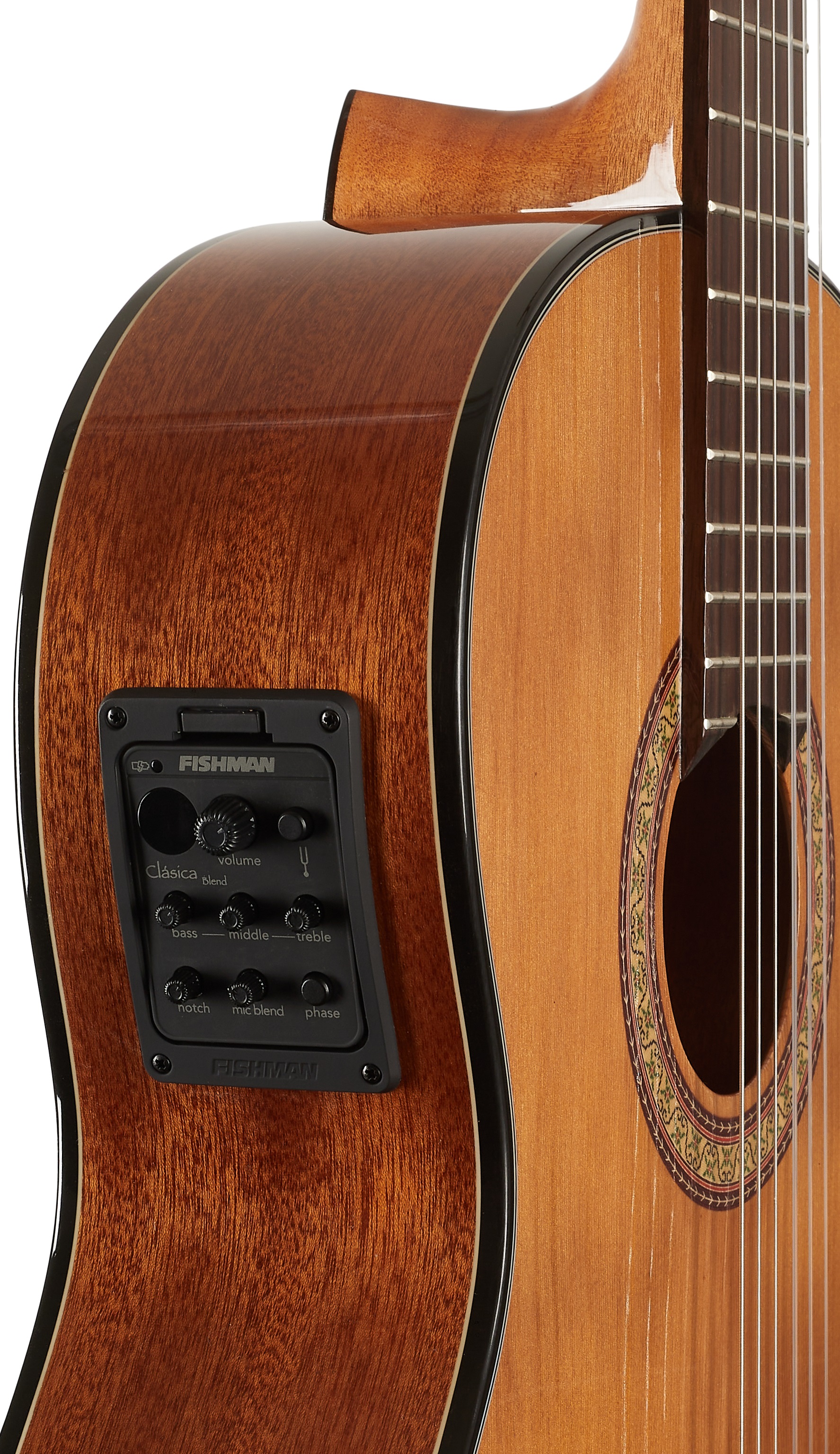 Klasická elektroakustická gitara Admira A2 EF je klasická elektroakustická gitara s polomasívnou konštrukciou, ktorá osloví aj tých najskúsenejších hudobníkov. Predná doska gitary je vyrobená z masívneho cédra, zatiaľ čo zadná doska a luby sú z laminovaného sapele. Africký mahagónový krk je prilepený k hmatníku z dreva kabukalli. Dobré ladenie zaručuje uchytenie strún v kvalitnej klasickej mechanike v zlatom prevedení a kabukalli hlavička. Štýlové spracovanie podčiarkujú tradičné prvky v podobe roziet, drev
