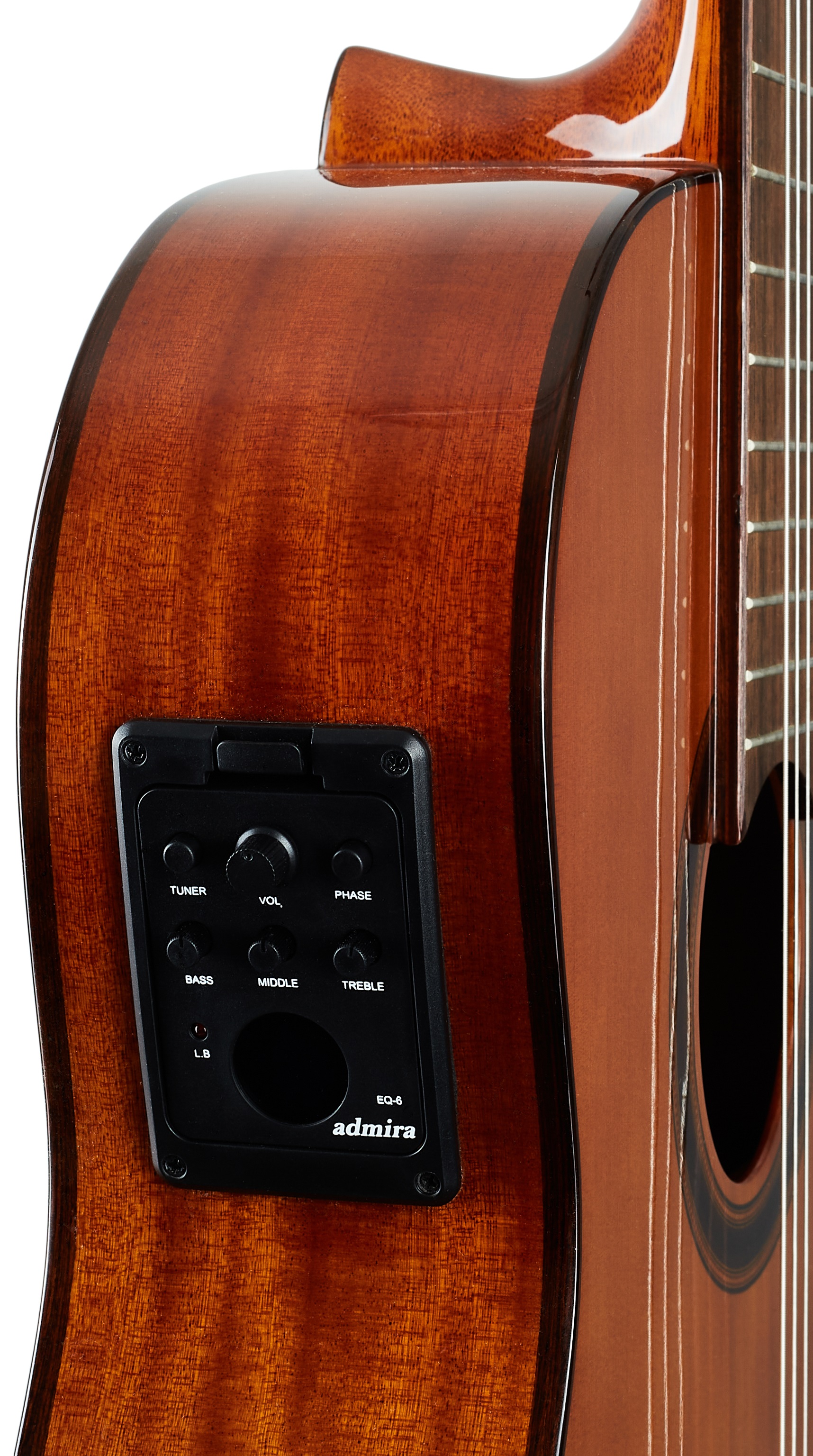 Klasická elektroakustická gitara Admira Málaga (ADM0540E) je cenovo dostupná klasická elektroakustická gitara, ktorá poteší začiatočníkov aj skúsenejších hráčov. Vyznačuje sa polomasívnou konštrukciou s masívnou cédrovou prednou doskou a laminovanou sapele zadnou doskou a lubmi. Telo je pokryté lesklou lakovou povrchovou úpravou. Ku krku z afrického mahagónu je prilepený hmatník z dreva kabukalli. Struny sú osadené v klasických niklových ladiacich mechanikách a hmatníku z dreva kabukalli. Štýlové spracovani