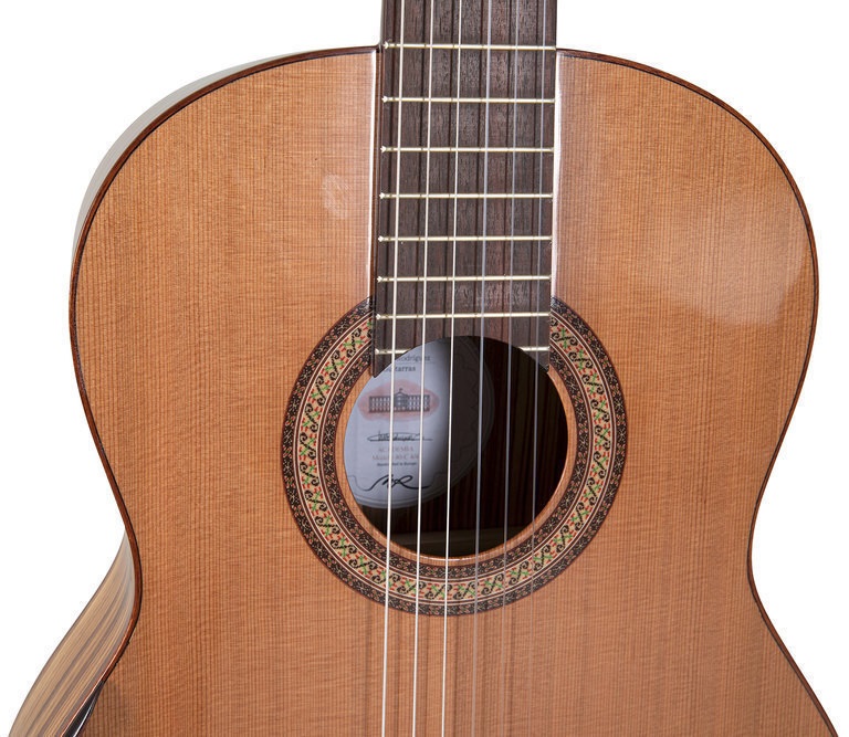 Klasická gitara Klasické gitary španielskej značky Manuel Rodriguez zo série ACADEMIA ponúkajú vysokú kvalitu spracovania a spojenie krku a tela "Spanish Heel". Ide o komplikovanejšiu konštrukciu, ktorá však patrí medzi najlepšie z hľadiska zvuku a stability krku. AC40 4/4 size zo série ACADEMIA je klasická gitara plnej veľkosti 4/4. Predná doska nástroja je vyrobená z masívneho červeného cédra, zatiaľ čo zadná doska a luby sú vyrobené z laminovaného exotického zebrana. Gitara ďalej disponuje mahagónovým kr