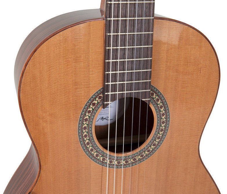 Klasická gitara Klasické gitary španielskej značky Manuel Rodriguez zo série ACADEMIA ponúkajú vysokú kvalitu spracovania a spojenie krku a tela "Spanish Heel". Ide o komplikovanejšiu konštrukciu, ktorá však patrí medzi najlepšie z hľadiska zvuku a stability krku. AC60 4/4 size zo série ACADEMIA je klasická gitara plnej veľkosti 4/4. Predná doska je vyrobená z masívneho červeného cédra, zatiaľ čo zadná doska a luby sú z laminovaného palisandru. Gitara je ďalej vybavená mahagónovým krkom, ovangkolovým hmatní