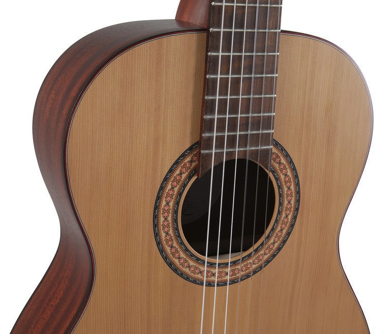 Klasická gitara Klasické gitary španielskej značky Manuel Rodriguez zo série TRADICÍON prinášajú v súlade s názvom série kombináciu tradičného dizajnu a časom overených drevín. TRADICÍON Series T-62 7/8 size "Senorita" je klasická gitara vo veľkosti 7/8. Predná strana nástroja je vyrobená z masívneho červeného cédra, zatiaľ čo zadná strana a luby sú z laminovaného mahagónu. Gitara je ďalej vybavená mahagónovým krkom, ovangkolovým hmatníkom a kobylkou, nultým pražcom a hmatníkovou intarziou zo syntetického b