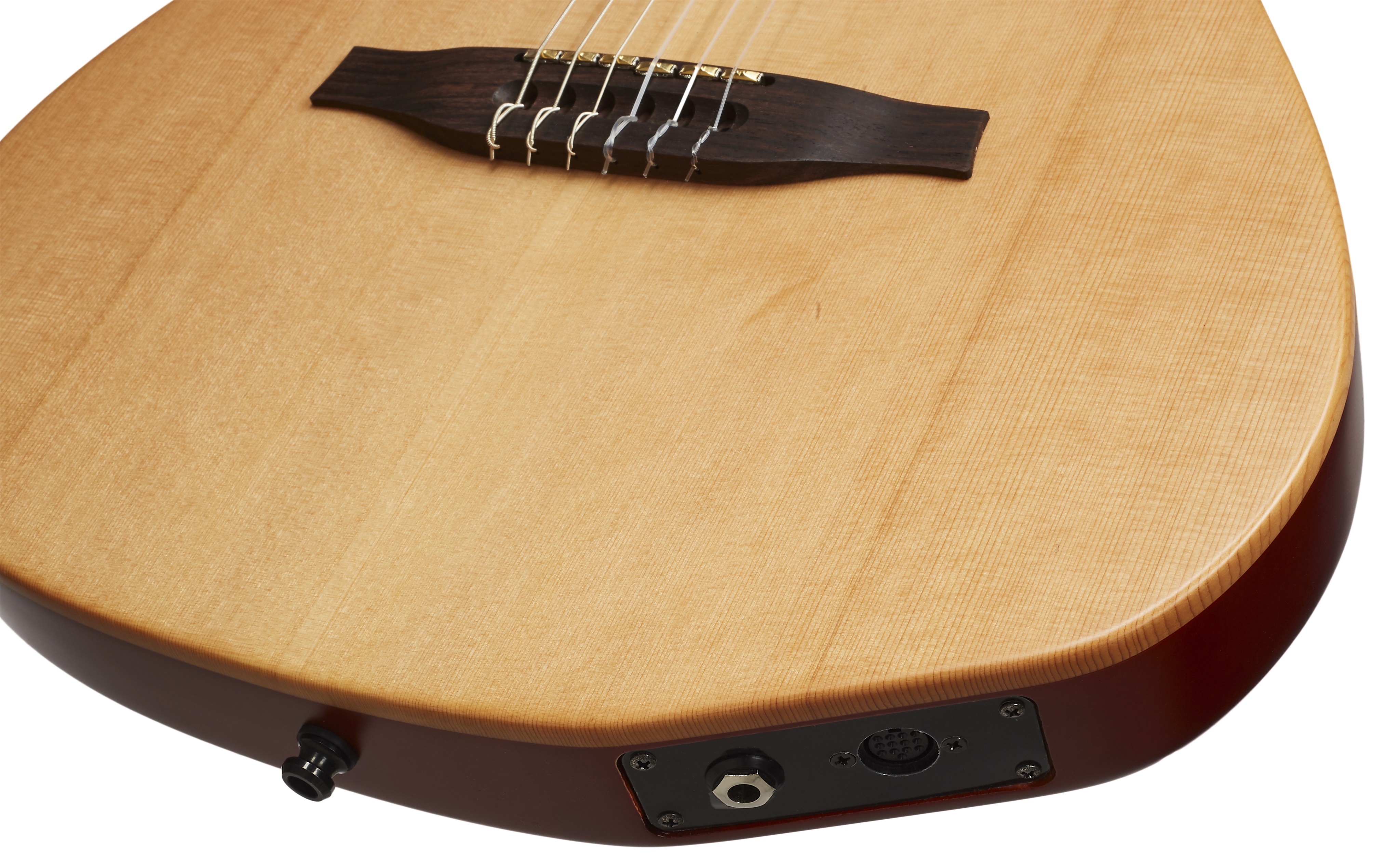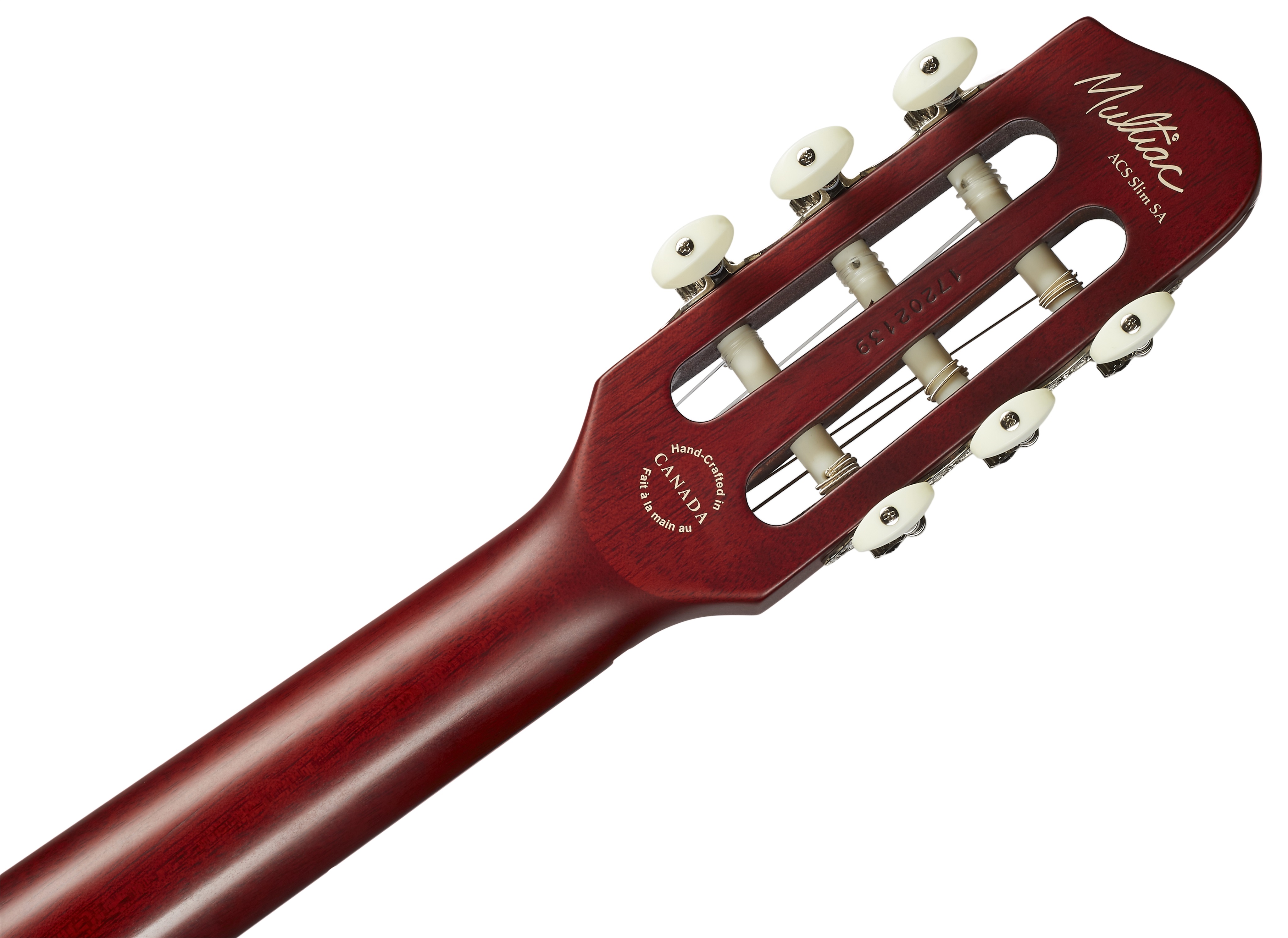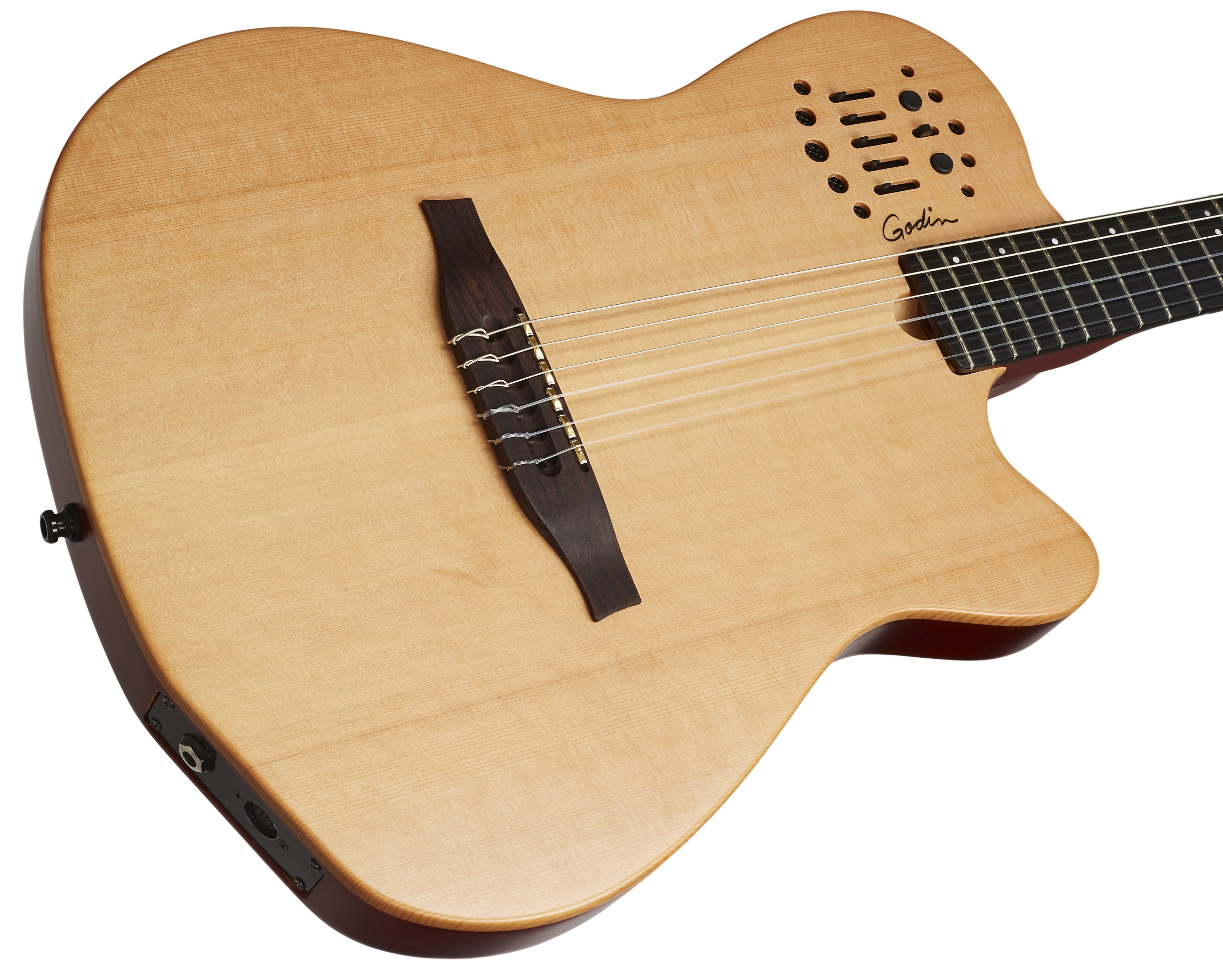 Elektroakustická midi gitara Séria Multiac kanadskej značky Godin ponúka atypické modely hybridných elektroakustických nástrojov s neobvyklými zvukovými možnosťami a zaujímavým dizajnom. Základom zvuku nástroja Multiac ACS-SA SLIM Nylon Natural SG je komorované telo zo strieborného javora a vrchná doska z masívneho cédra. K priskrutkovanému mahagónovému krku je prilepený hmatník z moderného kompozitného materiálu richlite osadený dvadsiatimi dvoma pražcami. Celkové parametre, t. j. úzke telo, úzky krk (šírk
