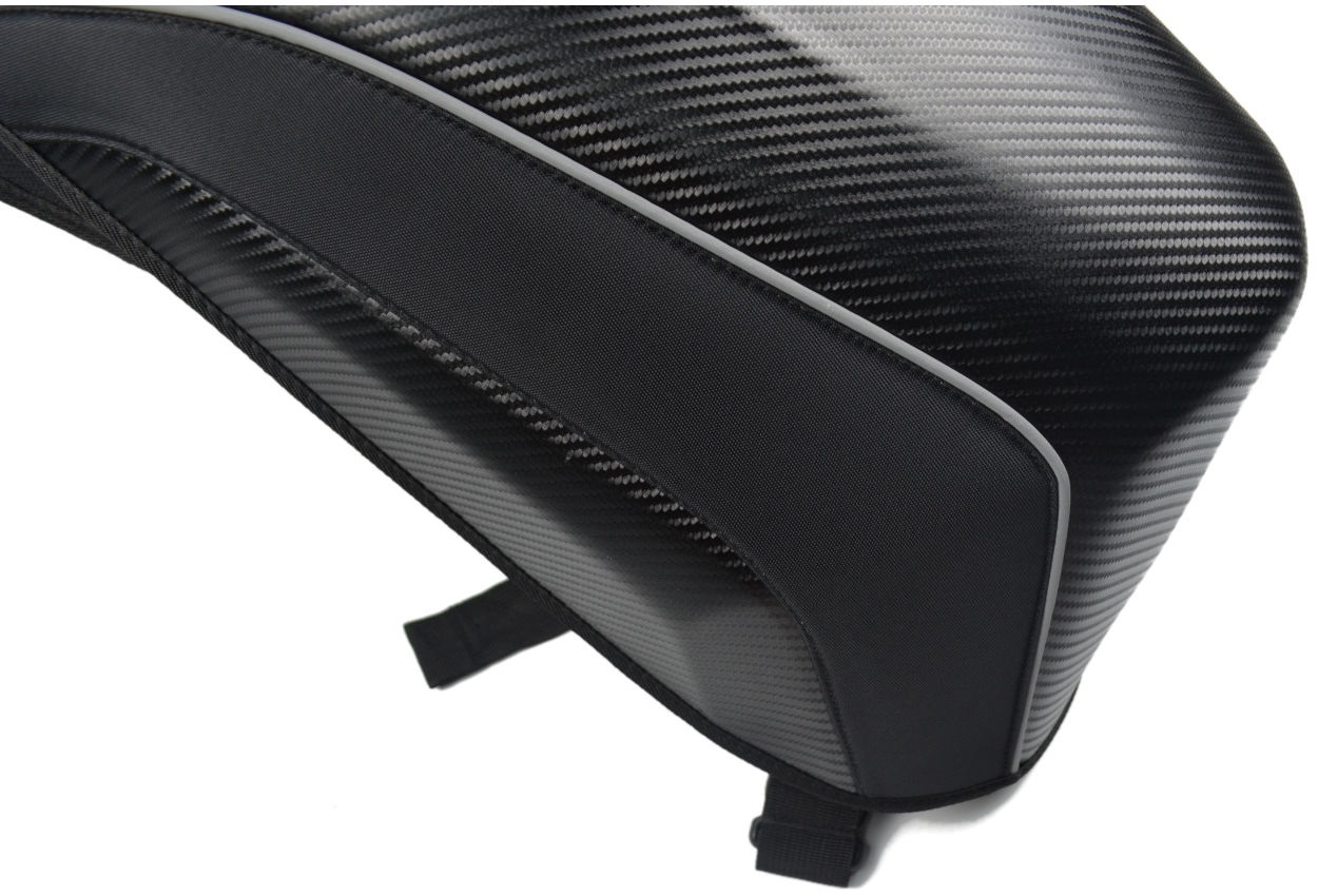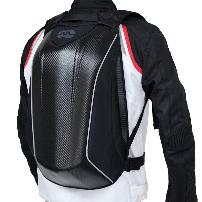 Batoh Aerodynamicky tvarovaný batoh vhodný pre motocyklistov a motorkárov s vodoodolným povrchom, priehradkou na notebook do veľkosti 14" a veľkým priestranným vreckom s objemom 35/45 litrov na motocyklovú prilbu. Ergonomicky tvarovaná konštrukcia sa dokonale prispôsobí vášmu chrbtu a veľmi účinne si poradí s nárazmi vetra pri rýchlej jazde. Multifunkčný batoh je vyrobený z kombinácie nepremokavej tkaniny a karbónu a ponúka aj špeciálne otvory na slúchadlá alebo fľašu s nápojom. Batoh je vysoko odolný voči