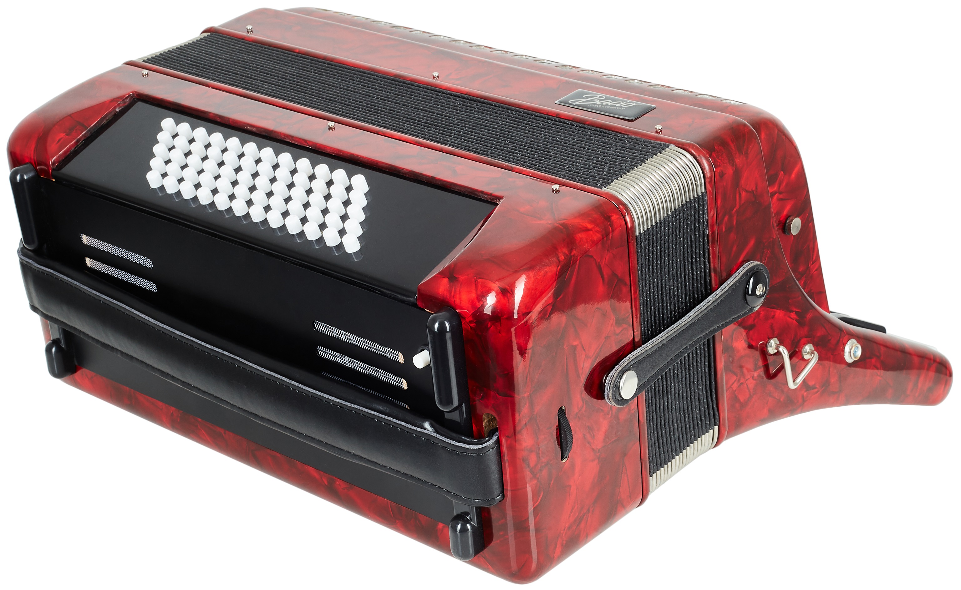 Klávesový akordeón Značka Bacio ponúka cenovo dostupné hudobné nástroje vhodné pre úplných začiatočníkov. Klávesový akordeón AT3460 sa dodáva v hliníkovom puzdre. Technické špecifikácie: – 3 hlasy. – 4 basové hlasy.