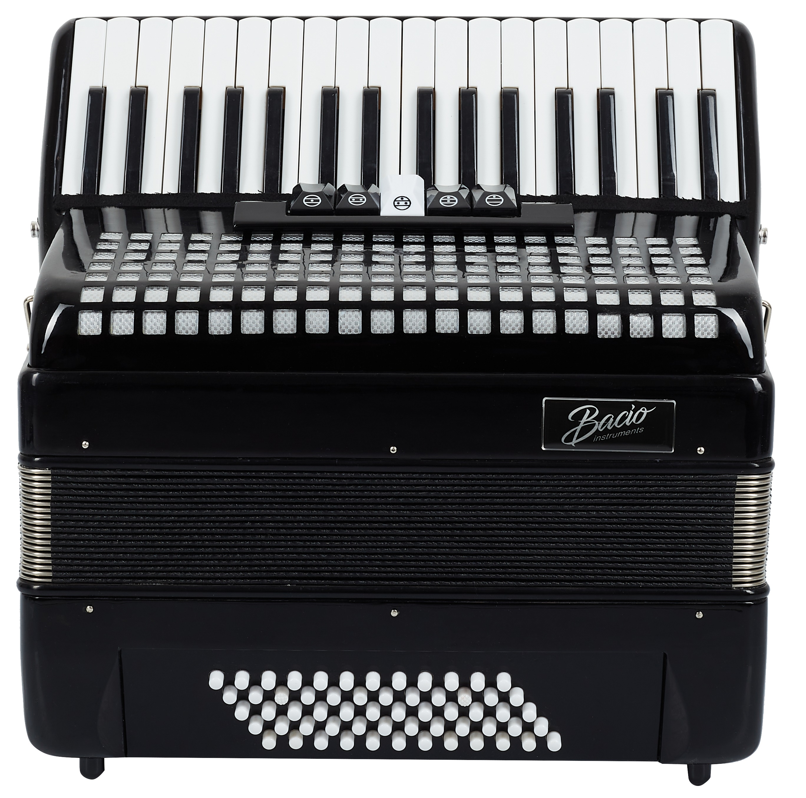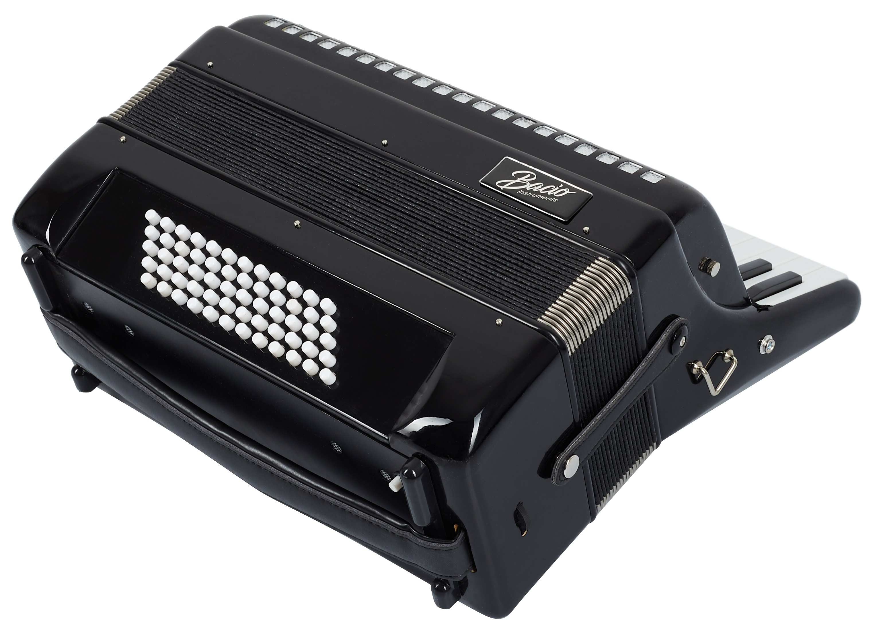 Klávesový akordeón Značka Bacio ponúka cenovo dostupné hudobné nástroje vhodné pre úplných začiatočníkov. Klávesový akordeón AT3460 sa dodáva v hliníkovom puzdre. Technické špecifikácie: – 3 hlasy. – 4 basové hlasy.