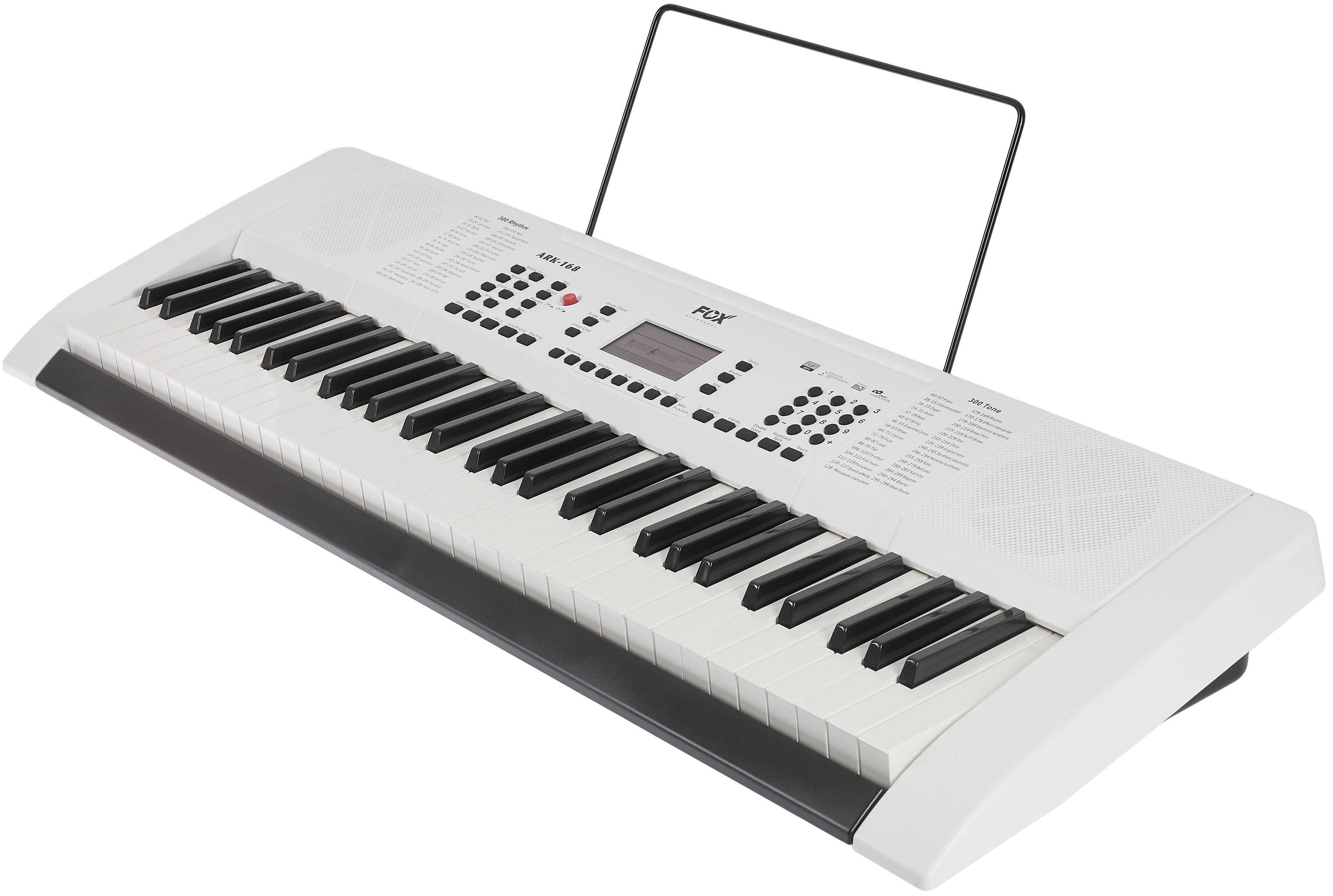 Klávesy s dynamikou úderu Klávesové nástroje FOX sú obľúbené pre svoj bezkonkurenčný pomer cena/výkon a sú vhodné najmä pre začínajúcich a detských hudobníkov. Budú im ponúknuté všetky základné funkcie, ktoré im pomôžu naučiť sa základné princípy hudby a spoznať rôzne farby zvuku. A ak sa hudobná vášeň nakoniec nerozvinie, nemusíte smútiť nad tým, že ste do svojho prvého nástroja investovali neprimerane vysokú sumu. FOX 168 ponúka 61 klávesov štandardnej veľkosti s dynamikou, 128 zvukov a 128 automatických