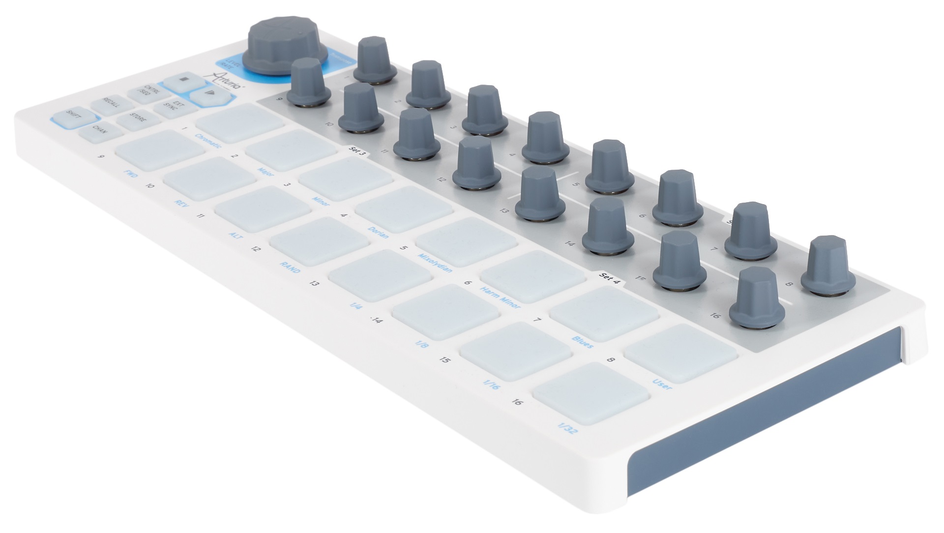 USB/MIDI kontrolér, sekvencer Arturia BeatStep je kompaktný univerzálny kontrolér, pomocou ktorého môžete napríklad ovládať sample v Ableton Live alebo BFD a EZDrummer. BeatStep môžete používať aj ako 16-stopový sekvencer na vytváranie slučiek a samplov pre syntetizátor, bicí automat alebo počítač. BeatStep možno jednoducho pripojiť k PC alebo iPadu cez USB, k bicímu automatu cez MIDI alebo k analógovému syntetizátoru cez CV/GATE.