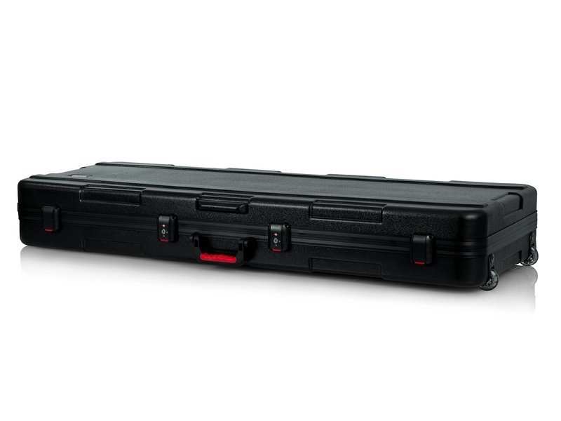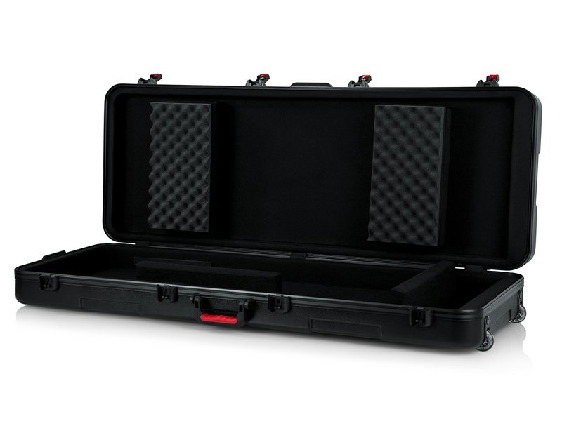 Klávesový obal Každé puzdro na klávesnicu Gator zo série GTSA-KEY ponúka najspoľahlivejšiu ochranu pre vaše klávesy. Kufrík je vyrobený z takmer nezničiteľného polyetylénu a je vybavený dvojicou zámkov na kľúče, takže sa o svoje kľúče nemusíte báť ani v lietadle. Na jednoduchú manipuláciu sú na boku kufra umiestnené odolné kolieska a pružinová rukoväť je ergonomicky tvarovaná, takže môžete hravo prenášať aj veľmi ťažké nástroje.
