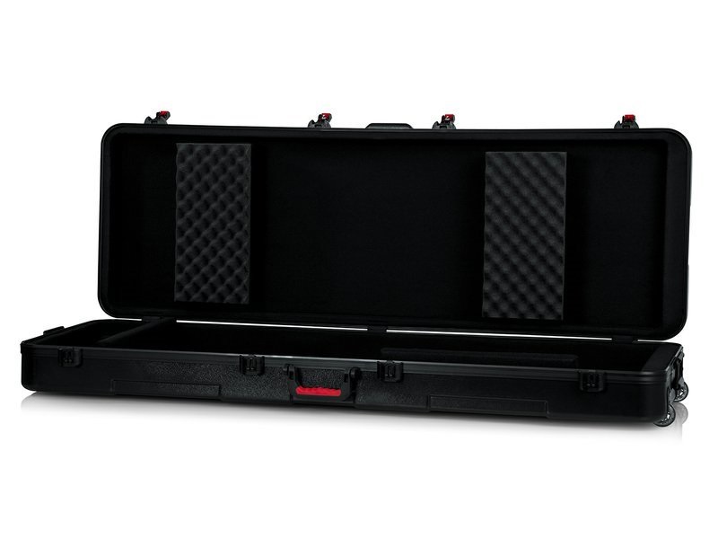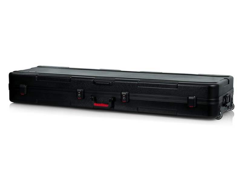 Klávesový obal Každé puzdro na klávesnicu Gator zo série GTSA-KEY ponúka najspoľahlivejšiu ochranu pre vaše klávesy. Kufrík je vyrobený z takmer nezničiteľného polyetylénu a je vybavený dvojicou zámkov na kľúče, takže sa o svoje kľúče nemusíte báť ani v lietadle. Na jednoduchú manipuláciu sú na boku kufra umiestnené odolné kolieska a pružinová rukoväť je ergonomicky tvarovaná, takže môžete hravo prenášať aj veľmi ťažké nástroje.