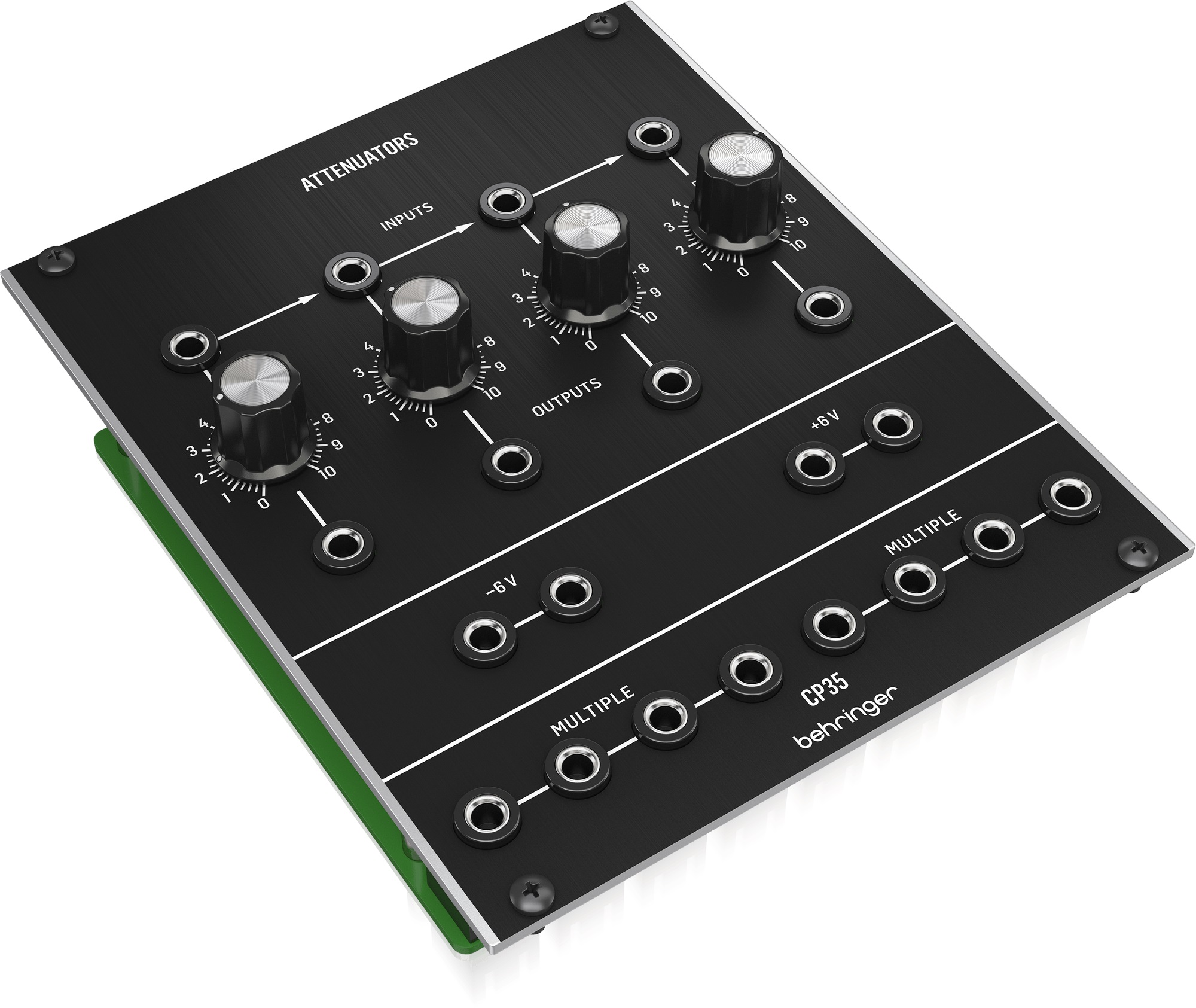 Eurorack modul Atenuátory CP35 sú autentickou reprodukciou modulátorových obvodov série Modular 55, 35 a 15, ktoré v 70. rokoch používali hviezdy ako Keith Emerson, Stevie Wonder, Tangerine Dream a mnohí ďalší. Modulátor si zachoval obvody Dual Multiple pre flexibilné prepojenie s inými syntetizátormi a obsahuje aj štvoricu vstupov pre útlm vstupného signálu a výstupy. K dispozícii sú aj ovládače Volume pre každý kanál a pevné 6V referenčné napätie pre výstupný signál. CP35 je možné umiestniť do Eurorack ka