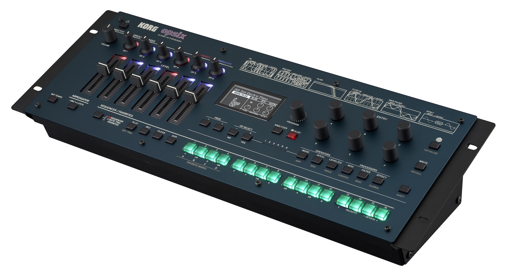 Syntezátor Modul KORG opsix je vylepšená verzia FM syntetizátora, ktorá v kompaktnom 19" stolnom/rackovom prevedení prináša revolúciu do prostredia hudobnej produkcie. Modul opsix je digitálny syntetizátor ako žiadny iný. Sekcia Operator Mixer zjednodušuje FM syntézu a robí ju nielen zrozumiteľnou, ale aj ovládateľnou – jednoduchá sada šiestich faderov a potenciometrov vás povzbudzuje k nájdeniu toho správneho zvuku. Vďaka ďalším možnostiam syntézy a programovania ponúka efektívnejší pracov