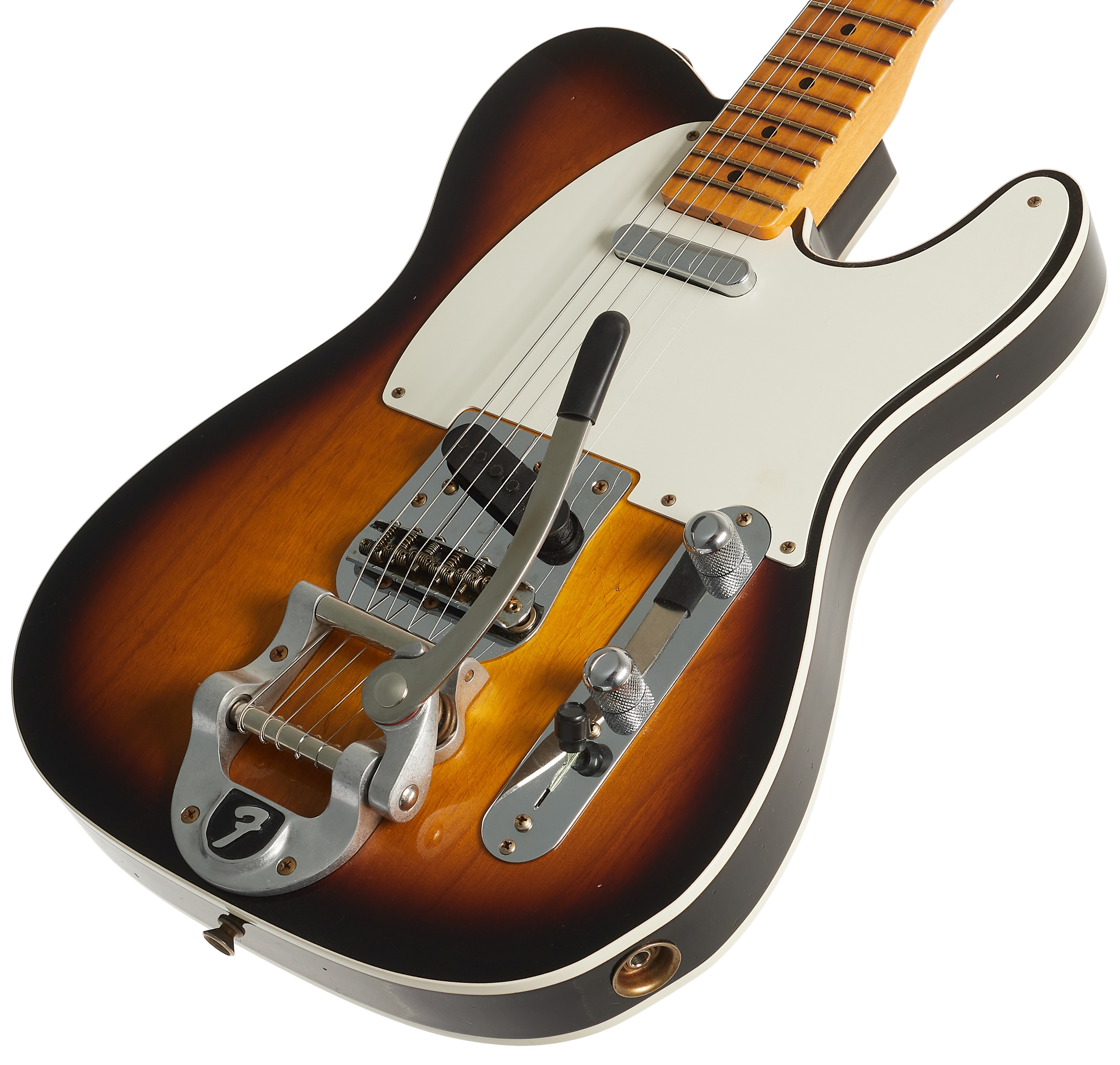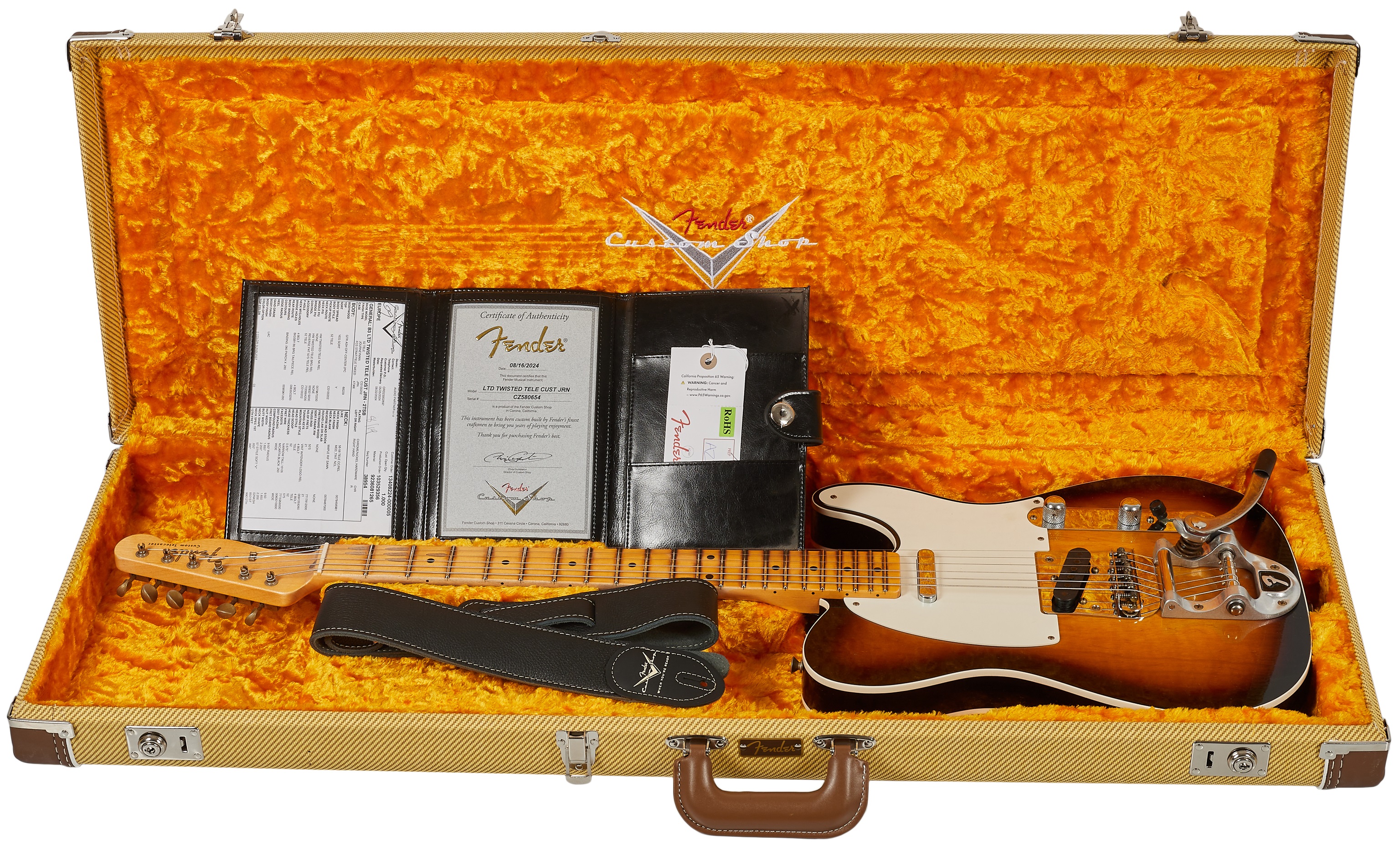 Elektrická gitara Elektrická gitara Twisted Telecaster Custom Journeyman Relic 2-Color Sunburst z limitovanej edície Fender Custom Shop je riadne upravený dizajn Telecastera so špeciálnymi snímačmi, Bigsby vibratom, otočenou ovládacou doskou a ďalšími prvkami, ktorý si celkom jasne nárokuje na svoje miesto na slnku. Telo gitary je vyrobené z dvoch kusov jaseňa. Povrchová úprava Journeyman Relic a farebná schéma 2-Color Sunburst ponúkajú prvky falošnej patiny, ktoré zodpovedajú desaťročiam pravidelného, skôr