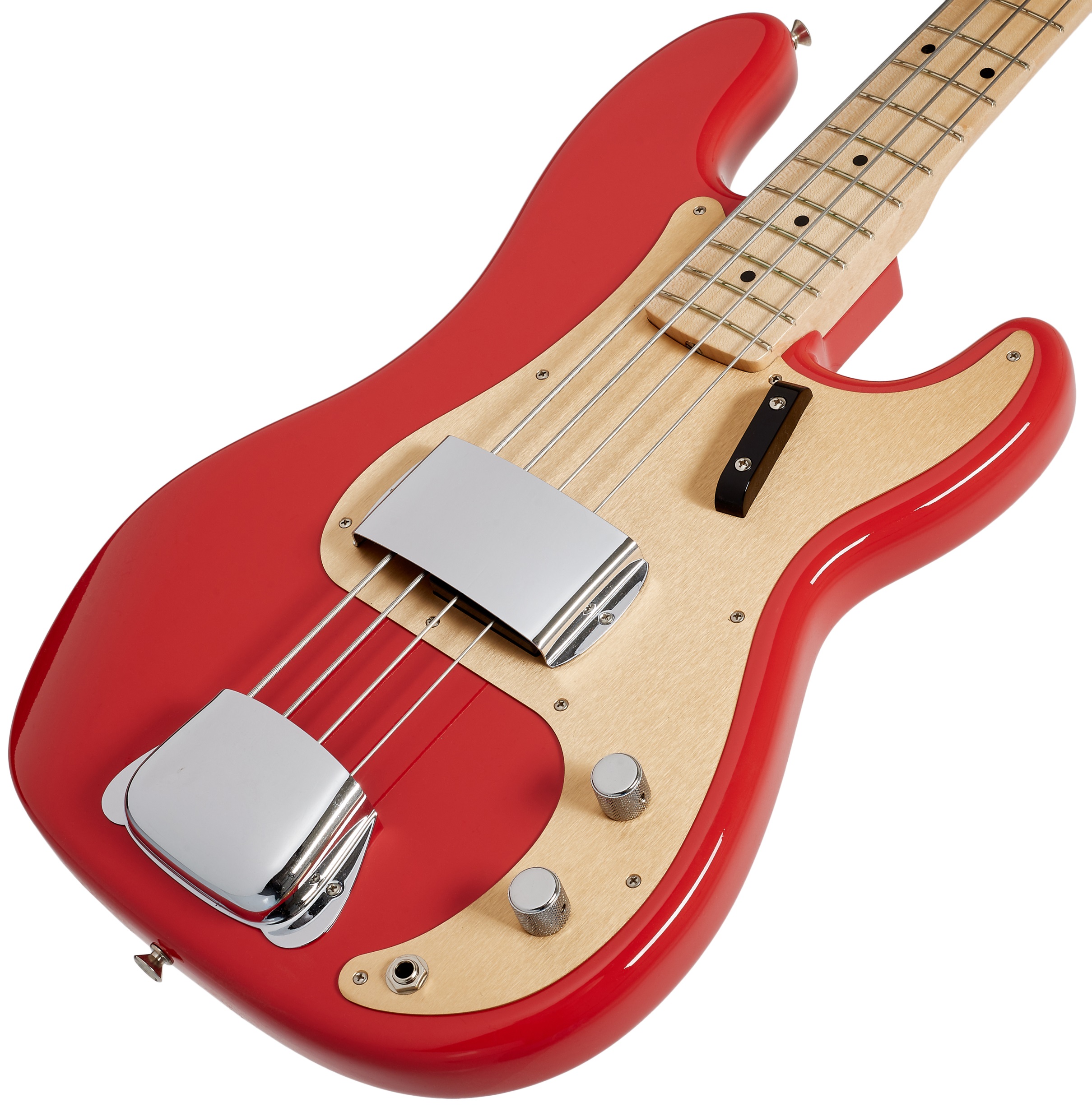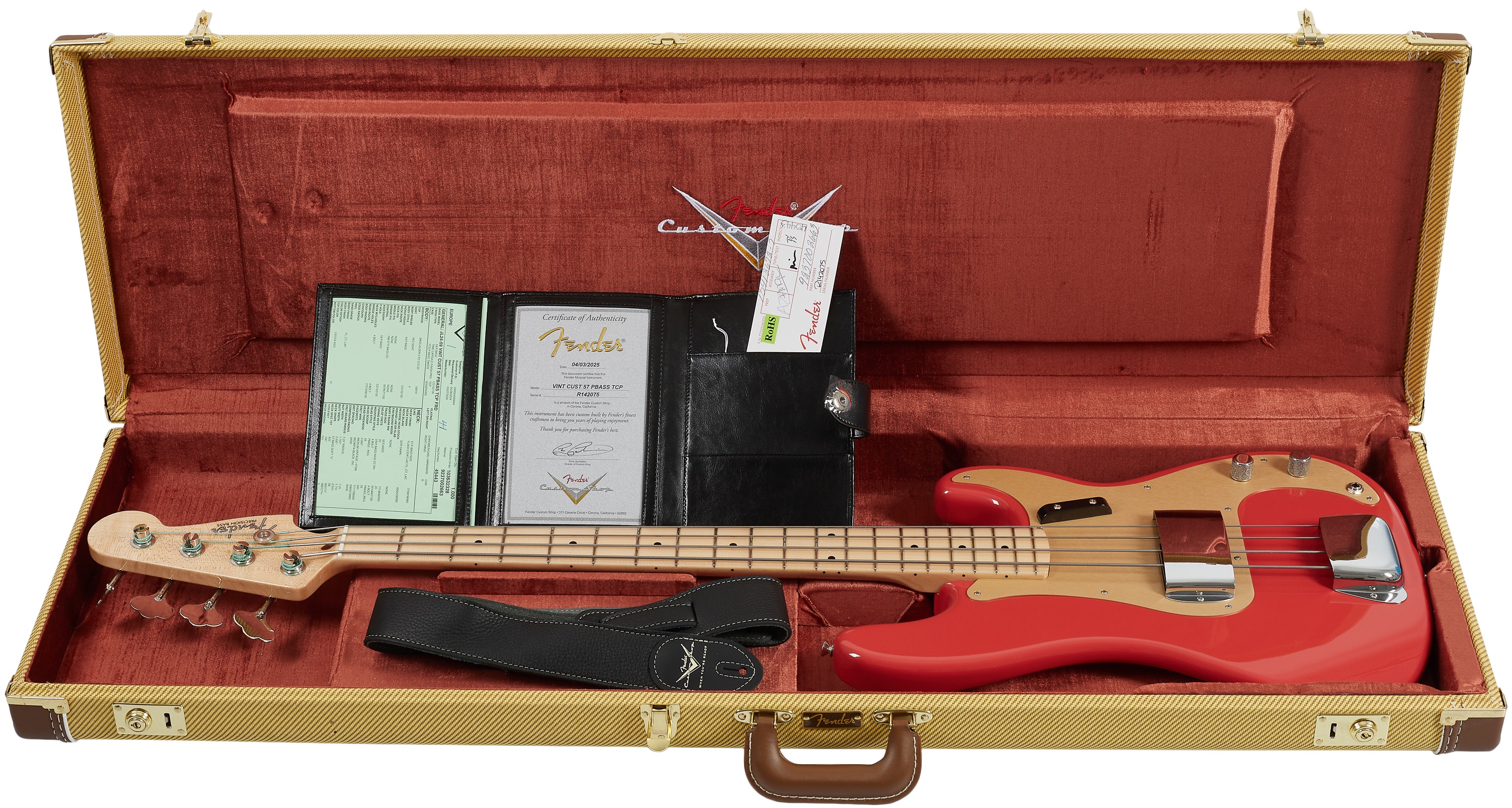 Elektrická basgitara Fender Vintage Custom '57 Precision Bass je vlajkovou loďou, ktorá už dlhé roky nesie pochodeň basgitár – či už na pódiu, alebo na slávnych štúdiových nahrávkach. Vintage Custom 57 Precision Bass Time Capsule Fiesta Red je moderný model z dielne Fender Custom Shop, ktorý autenticky stelesňuje dizajn basgitary '57 Precision Bass Telo basgitary je vyrobené z dvoch kusov jelše. Dobovosť nástroja podčiarkuje povrchová úprava NOS (New Old Stock), úplne nová autentická povrchová úprava origin