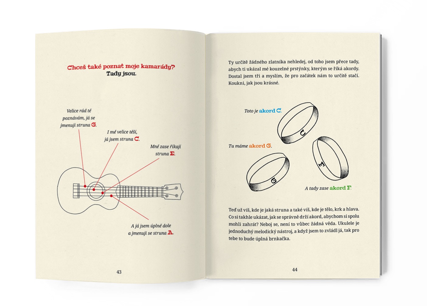 Škola hry na ukulele Obľúbená vzdelávacia kniha Nota a ukulele rozpráva príbeh malého chlapca menom Nota, ktorý veľmi túži hrať na hudobný nástroj. Keď v lese stretne rezbára, ktorý mu vyrobí ukulele, je jasné, na čo bude Notty hrať. Celý rozprávkový príbeh zábavnou formou vedie deti k hudbe. V knihe deti objavia, aké struny vlastne ukulele má, náčrt ukulele s prstokladom troch základných jednoduchých akordov, jednoduchú pesničku z akordov, ktorú sa naučia pri čítaní príbehu, aby ju mohli hneď zahrať, a vyp