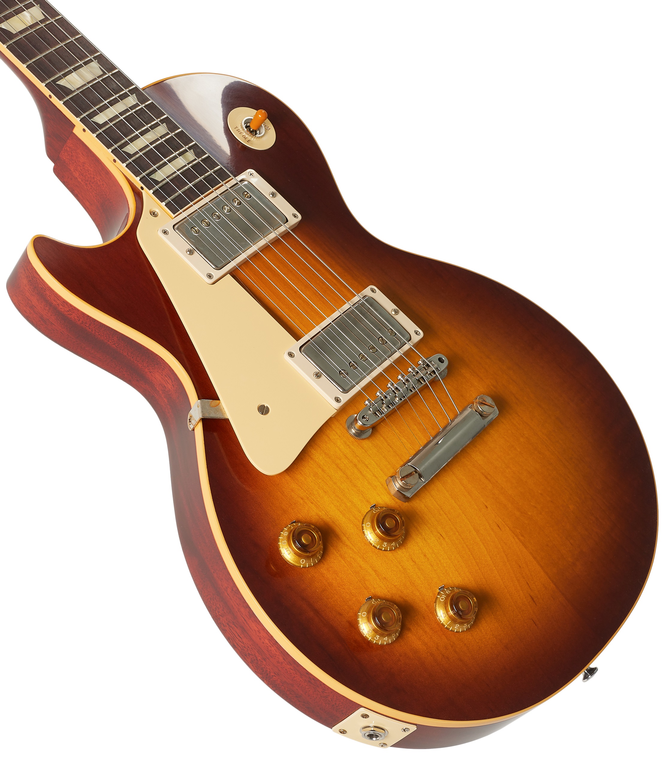 Ľavoruká elektrická gitara Existuje len málo elektrických gitár, o ktorých možno povedať, že sú také klasické alebo legendárne ako model Les Paul od amerického výrobcu Gibson. CS 1958 Les Paul Standard Reissue VOS (Left-Handed) Iced Tea Burst je historicky autentický "reissue" model z dielne Gibson Custom Shop, ktorý sa vracia k dizajnu z roku 1958. Masívne mahagónové telo je vybavené dvojdielnou vrchnou doskou z hladkého javora a povrchovou úpravou Iced Tea Burst. Špeciálna povrchová úprava VOS (Vintage Or