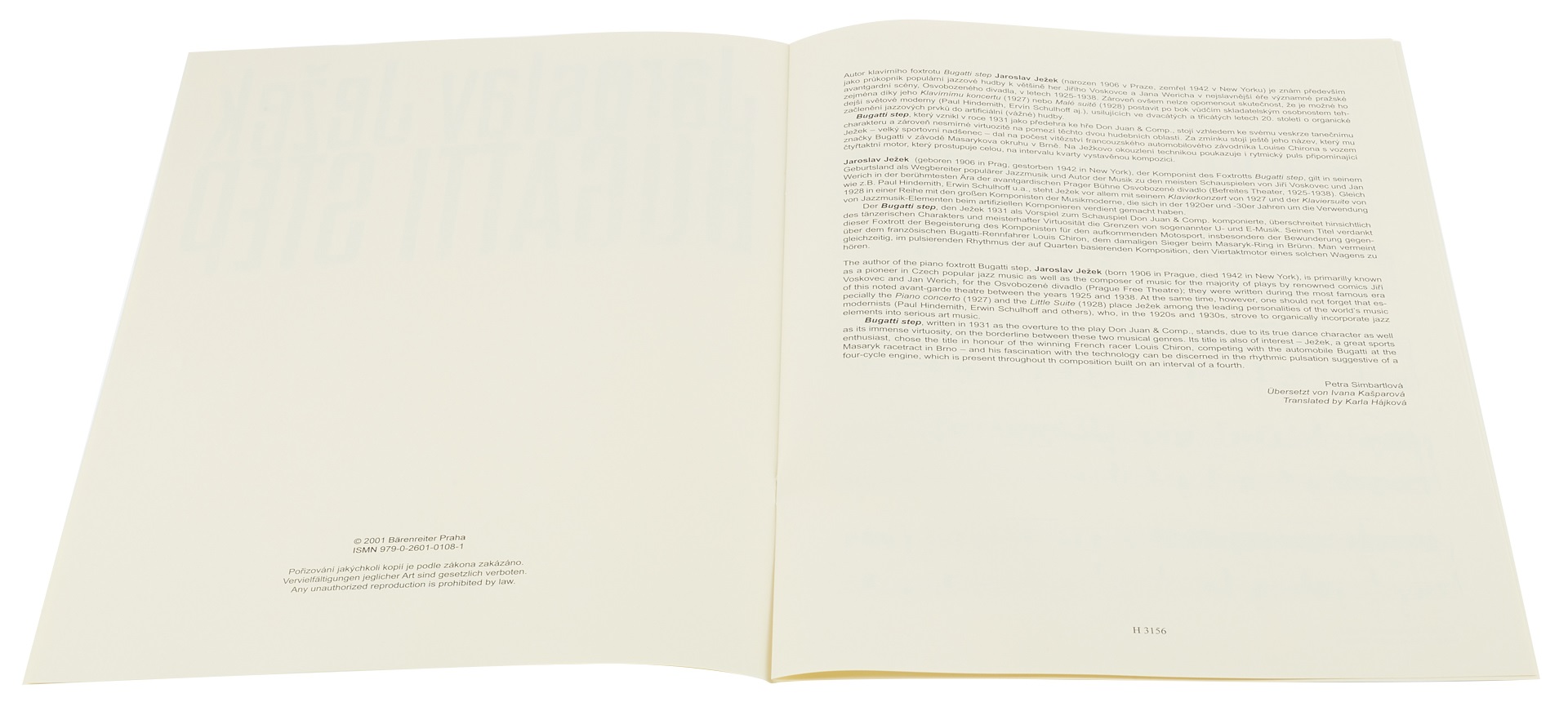 Noty pre klavír Bugatti step, ktorý vznikol v roku 1931 ako predohra k skladbe Don Juan & Comp., stojí na pomedzí jazzu a vážnej hudby vďaka svojmu čisto tanečnému charakteru a obrovskej virtuozite. Za zmienku určite stojí aj jej názov, ktorý jej dal veľký športový nadšenec Jaroslav Ježek na počesť víťazstva francúzskeho automobilového pretekára Louisa Chirona s vozidlom Bugatti v pretekoch na Masarykovom okruhu v Brne. Ježkovu fascináciu technikou naznačuje aj rytmický pulz pripomínajúci štvortaktný mo