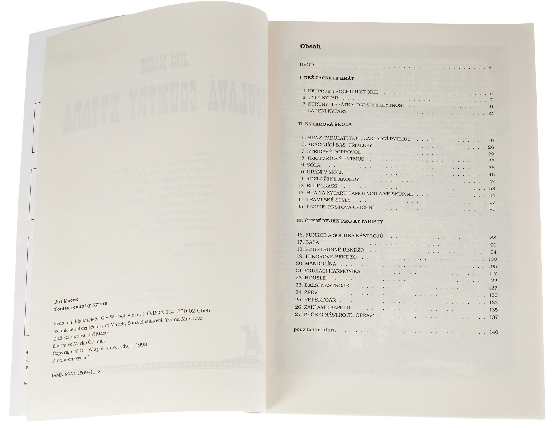 Škola hry na gitare Druhé prepracované vydanie obľúbenej a beznádejne rozobranej učebnice, ktorá sa ako jediná u nás zameriava na jednoduchý country štýl vhodný na hru so skupinou pri táboráku a v kapele; množstvo sól, prstovú a trsátkovú hru a stručné návody na hru na iné nástroje (banjo, kontrabas, mandolína, husle, …) a na viachlasný spev. Informácie o údržbe a oprave nástrojov, ďalšie zaujímavosti.