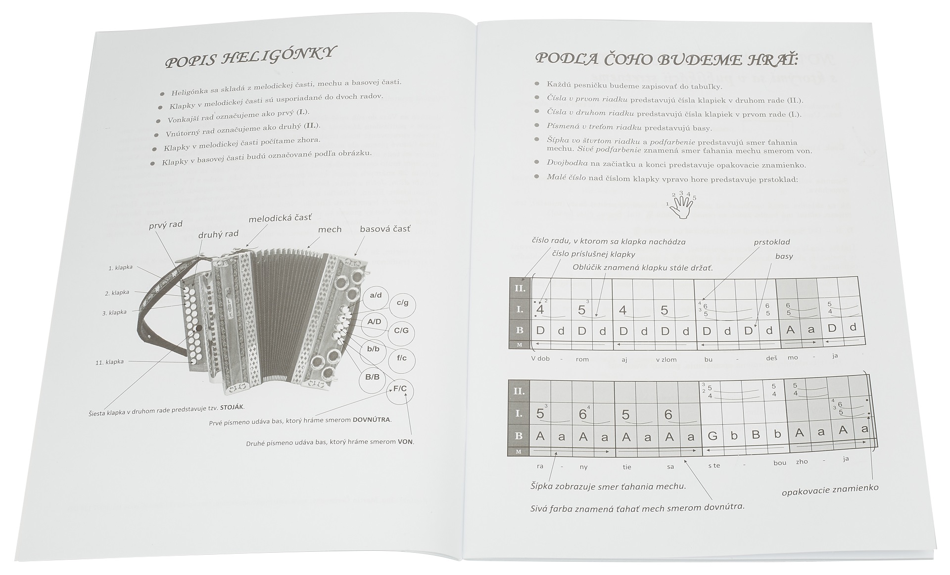 Noty 26 populárnych melódií napísaných pre dvojradovú heligónku – Holubí dom, Josin z bažín, Deti z Pirea, Keď si ma brali, Učiteľ tanca, Titanic a i. Súčasťou publikácie je CD s nahrávkami skladieb v C-F ladení. 1. Keď skončím 2. Bon soir Mademoiselle Paris 3. Čerešňa 4. Deti z Pirea 5. Dnes večer vás zabavíme 6. Elena 7. Aleluja 8. Hej, sokoly! 9. Dievčatá z našej materskej školy 10. Holubí dom 11. Josin z bažín 12. Keď ma považovali za vojaka 13. Kaťuša 14. Na schodoch 15. Marisha 16. Malý stroj 17. Na č