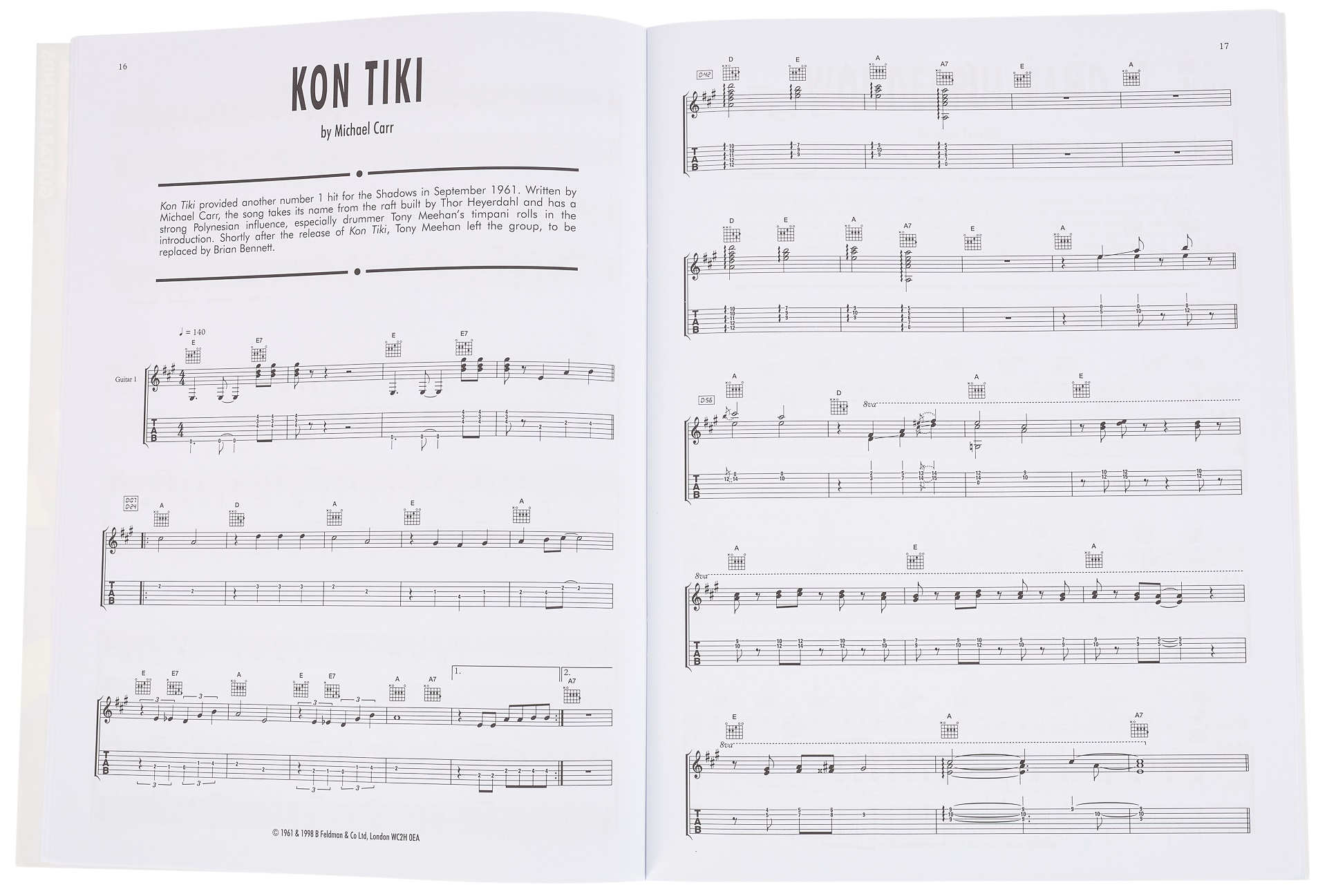 Noty pre gitaru Táto publikácia ponúka výber najznámejších hitov anglickej skupiny The Shadows v úpravách pre gitaru a spev. Každá pieseň je napísaná v gitarovej tabuľke s akordovými značkami a textom. Zoznam skladieb: – Apache – Atlantída – F.B.I. – Tapper na nohy – Geronimo – Gitarové tango – Kon Tiki – Nádherná krajina