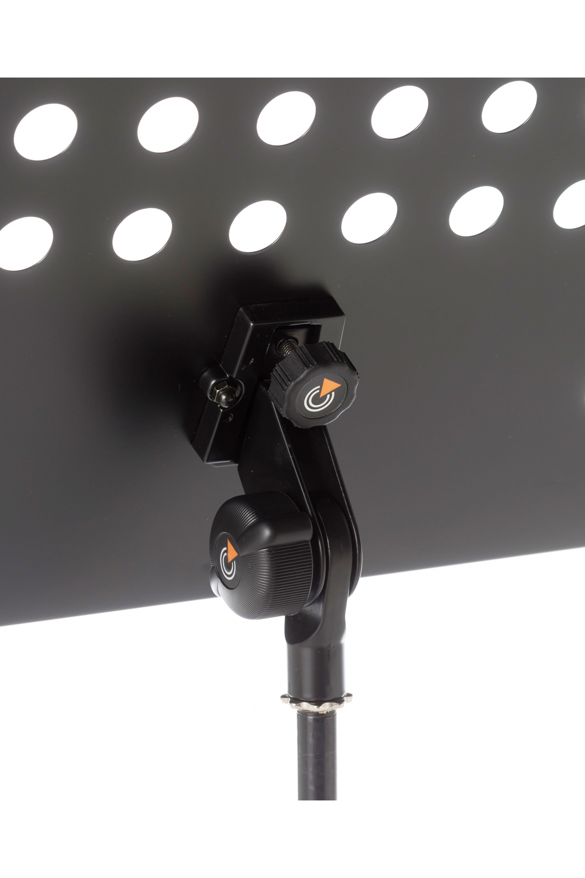 Notový stojan Profesionálny pevný hliníkový stojan na noty. Kontaktné body sú odolné proti poškriabaniu a vybavené gumovými protišmykovými podložkami. Rozmery dosky: 495 x 340 mm.