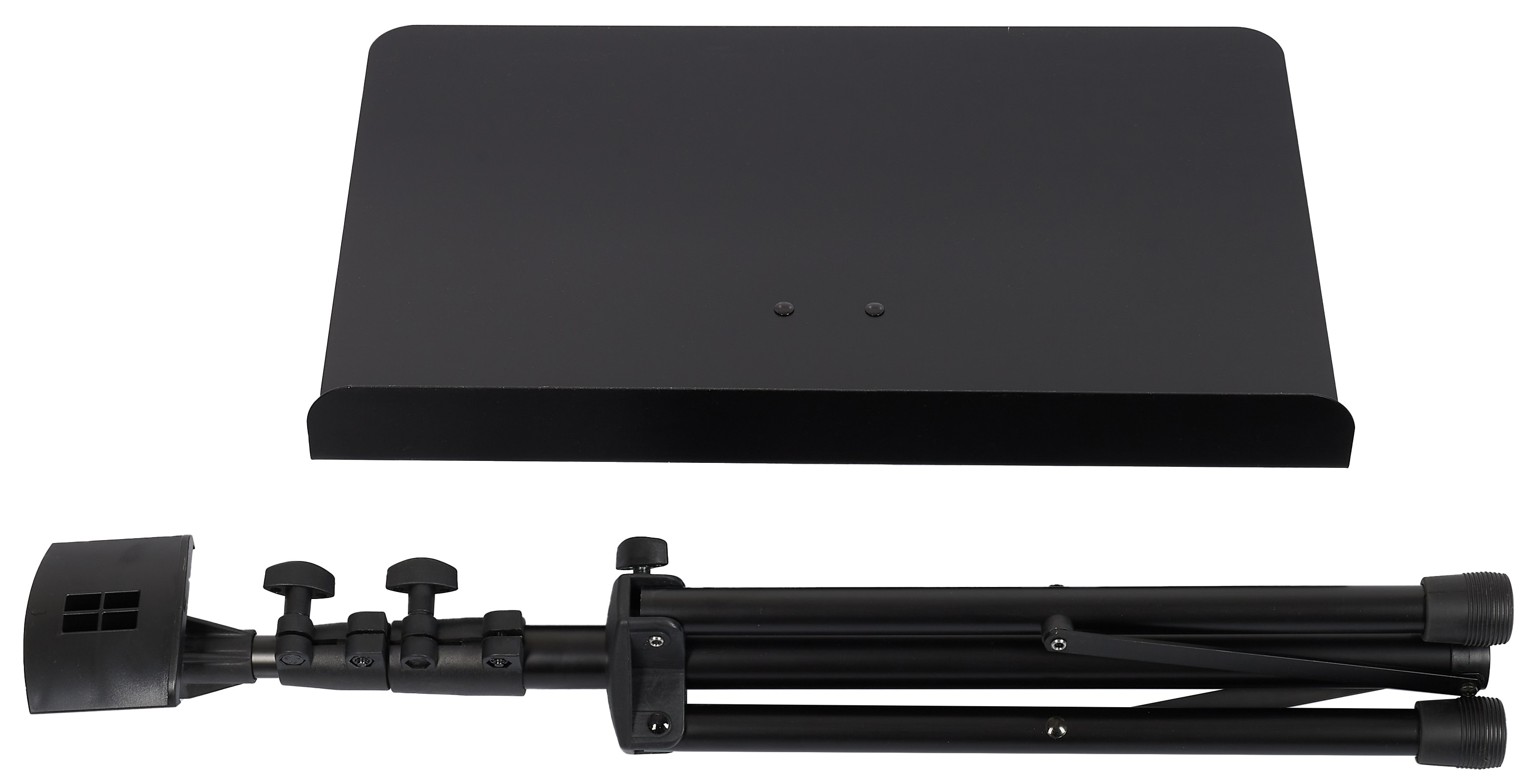 Notový stojan Tento notový stojan s oceľovou konštrukciou a pevným, ale ľahkým hliníkovým stojanom je vhodný najmä pre detské orchestre. Ponúka trojdielnu skladaciu konštrukciu, stabilnú základňu statívu a nastaviteľnú výšku od 580 do 1340 mm. Špecifikácie: – Veľkosť stojana na noty: 490 x 340 mm. – Maximálna výška pultu: 1750 mm
