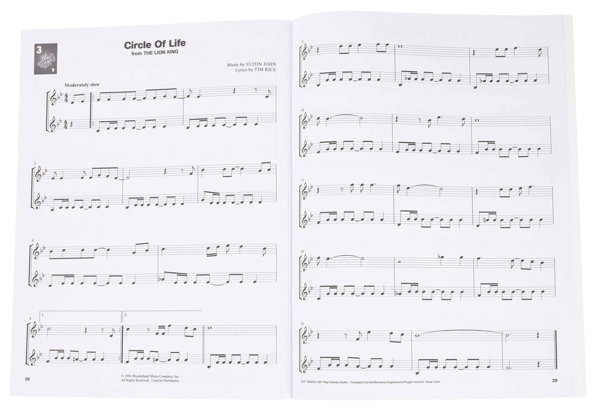 Škola hry na trúbke Look, Listen & Learn – Play Disney Duets je doplnkom k trojradovej knihe pre začiatočníkov na trúbku/kornet Look, Listen & Learn. Obsahuje známe melódie z filmov Walta Disneyho v jednoduchých úpravách pre dve sólové trúbky/kornety. Skladby z rôznych edícií Play Disney Duets (napísané pre rôzne nástroje) sa dajú hrať vo väčších zoskupeniach, t. j. sú vhodné aj na skupinovú výučbu. Zoznam skladieb: – 1. Can You Feel the Love Tonight – 2. Supercalifragilisticexpialidocious – 3. Chim
