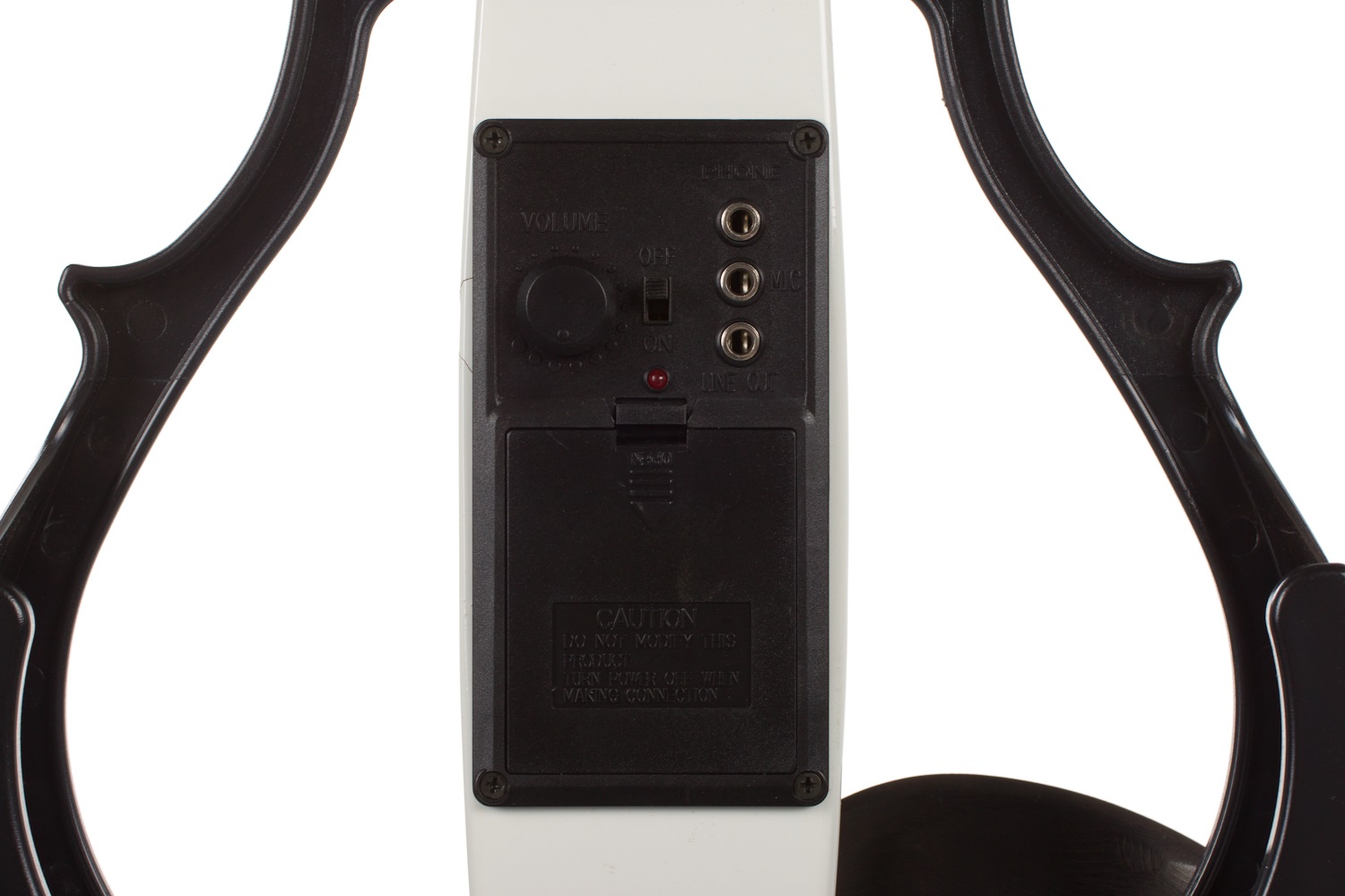 Elektrické husle Biele, farebné kovania Masívne drevené telo Súprava – ebenové drevo Aktívny piezoelektrický snímač Slúchadlá Ovládanie hlasitosti Ebenový hmatník Špeciálna podpora ramien Kalafuna, sláčik, puzdro so zadnými popruhmi