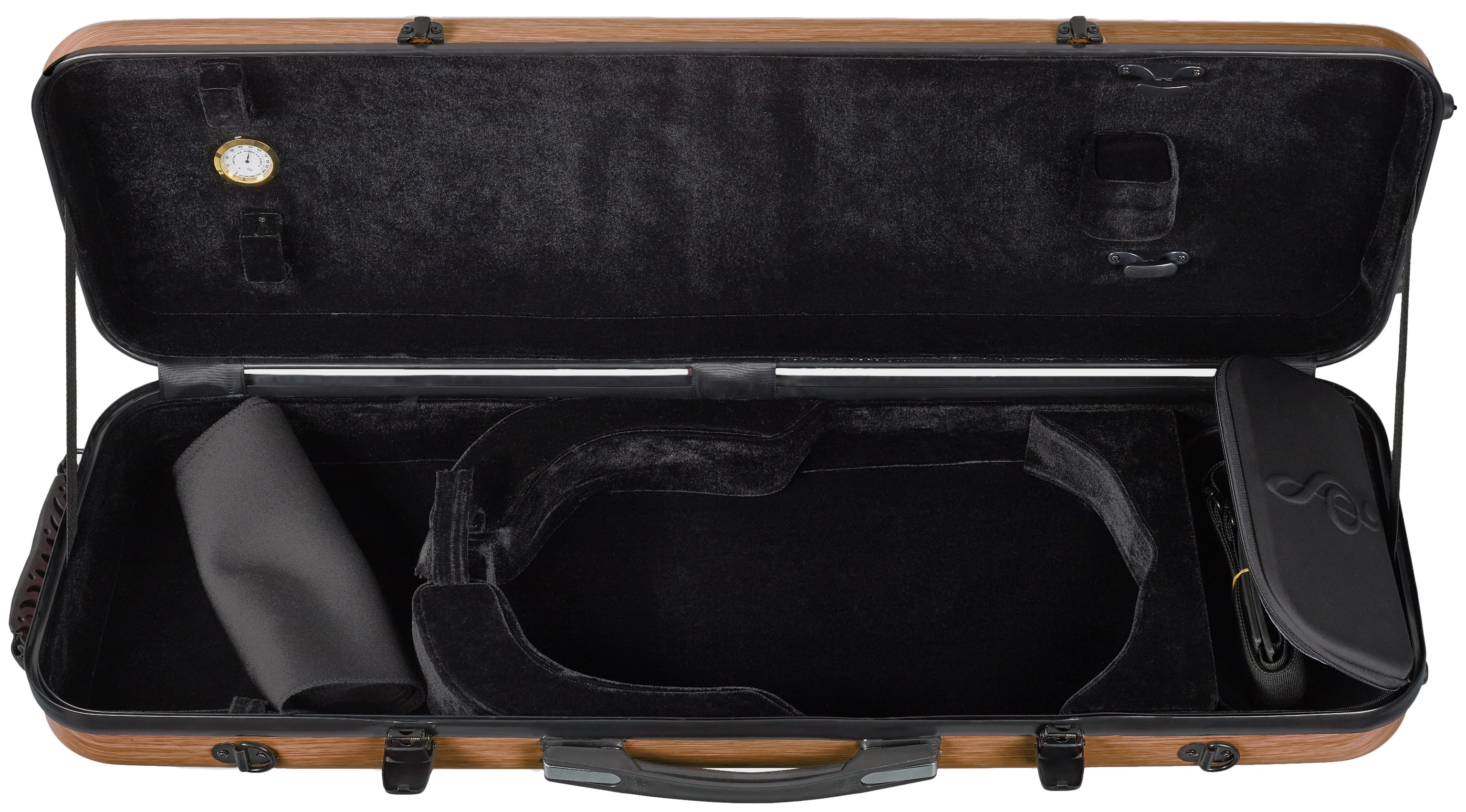Puzdro na husle Toto vysokokvalitné škrupinové puzdro je vyrobené z mimoriadne tvrdého syntetického materiálu, ktorý nielen spoľahlivo chráni váš nástroj pred nárazmi a nepriaznivým počasím, ale zároveň poskytuje puzdru príjemne nízku hmotnosť. Vnútorný priestor je potom vybavený hrubým polstrovaním, ktoré zaisťuje bezpečnosť laku nástroja. Pohodlie na cestách zaručuje odnímateľný ramenný popruh, dve rukoväte a množstvo úložného priestoru na príslušenstvo. V portfóliu Bacio Instruments nájdete strunové či d