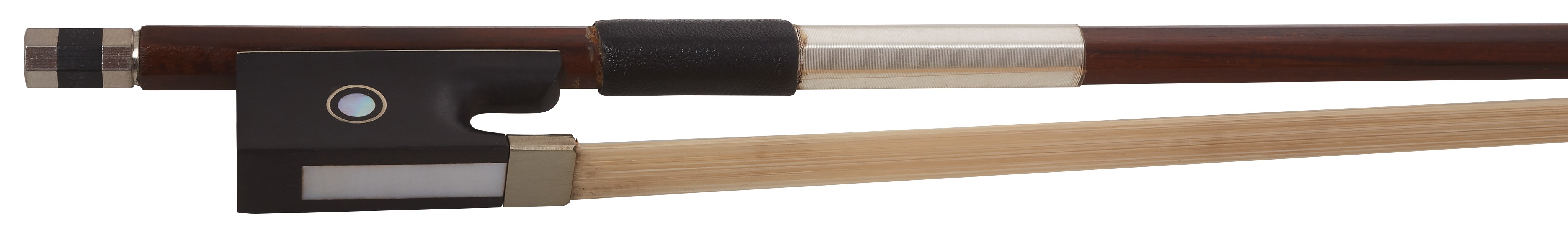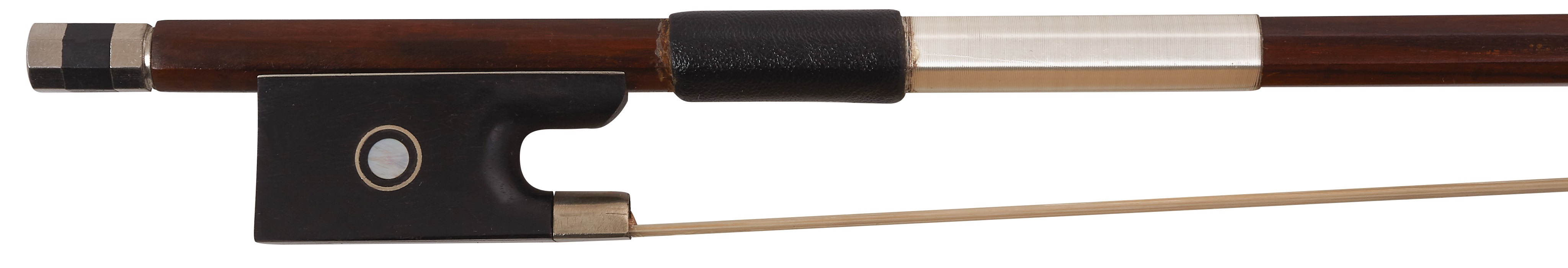 Husľový slák Husľový sláčik s osemhrannou tyčou, strieborným a niklovým ornamentom, ebenovou žabkou s ozdobným očkom a prírodnými konskými vlásiami.